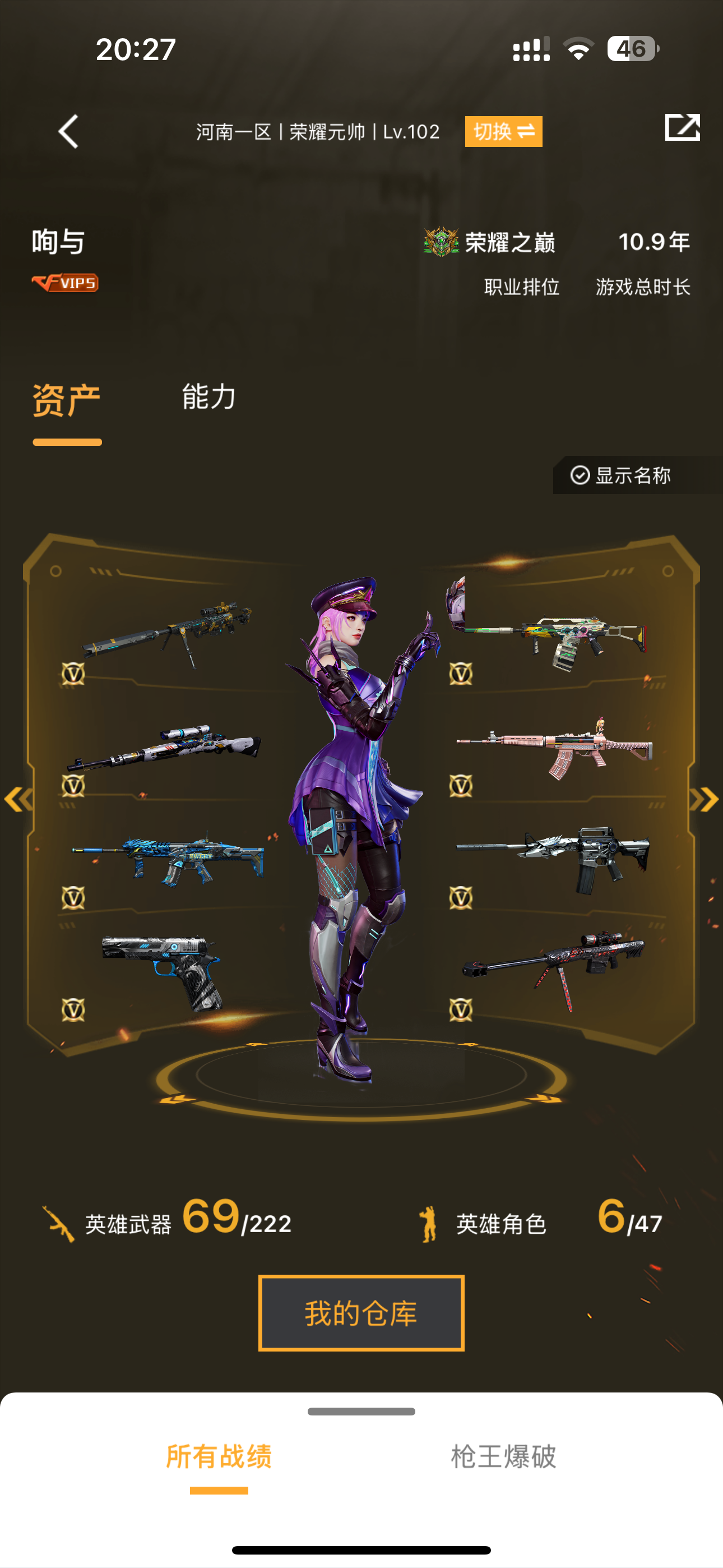 基本都大差不差,禁止挂机开G,祝老板游戏愉快;柯尔特-荣耀世冠白鲨2023,炽芒蝶刃,传说星骇,电竞教官-云悠悠,QBZ03-金色蔷薇,G36C-幻影,M200-幻神,