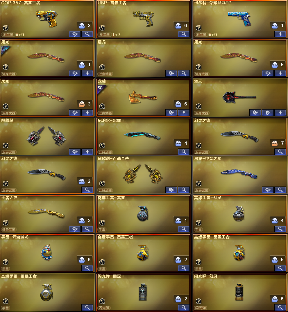 首发ACE天袭✅幻神4件套✅星神3件套✅妮妮✅法玛斯✅幻影✅2盘龙5炼狱✅QBZ4件套✅毁灭5皮音效卡 稀有武器:M200幻神、加利尔ACE-天袭、98K星神、FAMS G2天戎、G36C幻影、盘龙X2+5炼狱(3炼狱+炼狱悦蓝+炼狱百战金芒)、烈龙X4+斯泰尔幻面灵狐、HK朱雀、QBZ天罚、QBZ金色蔷薇、火麒麟X3、黑龙X2、雷神X2、黑骑士、无影、死神、黑武士、机械迷城X2、黑鲨、龙血、雷霆、黑武士锦绣游龙、源雷神、死神雪域霜狐、机械迷城穹宇、HK朱雀电竞之星、玫瑰精灵、烈火、天龙、毁灭X2、极光X2、裁决X2、Barrett朱雀、暗月传说、A12雷霆、修罗X3、天神X2、COP幻灵、柯尔特电竞之星、柯尔特荣耀世冠EP、屠龙X4、龙啸、擎天、麒麟刺、尼泊尔雷霆、幻灵之锋X2、麒麟刺百战金芒、屠龙电竞之星、赤狱骑士、竞魂无影、碧霄极光、金色蔷薇狼王、裁决-百城联赛天津、机甲撕裂者3、激光毁灭者3、巨龙咆哮者3、乱世-超越3、神圣爆裂者-末日3、阐释者3 稀有角色:葵、妮妮((四防:减少闪光效果+免疫队友炸弹伤害+减少掉落伤害+副武器自动装弹))、沙漠玫瑰、樱、影豹、零纪元、幻面灵狐、葵-阿尔法武装、乔伊教练、王者春(四防:减少闪光效果+免疫队友炸弹伤害+减少掉落伤害+副武器自动装弹)、王者救世主、王者玲珑小乔(四防:减少闪光效果+免疫队友炸弹伤害+减少掉落伤害+副武器自动装弹)、王者涂鸦(四防:减少闪光效果+免疫队友炸弹伤害+减少掉落伤害+副武器自动装弹)、修道士、雪域霜狐、云海玲珑、暗夜X、奥摩X、初恋灵狐 音效卡:M200幻神音效卡、QBZ天罚音效卡、QBZ金色蔷薇音效卡/竞星悦动音效卡、雷神音效卡、黑骑士音效卡、火麒麟音效卡、毁灭音效卡、死神雪域霜狐音效卡、雷神-怀旧音效卡、炼狱百战金芒音效卡、修罗盛典舞曲音效卡、碧霄极光音效卡、屠龙电竞之星音竞星悦动音效卡、HK朱雀电竞之星音竞星悦动音效卡、柯尔特电竞之星音竞星悦动音效卡 稀有皮肤:幻神电竞之星皮肤/周瑜皮肤/动感闪耀皮肤、星神CFS2025皮肤、幻影破浪逐光皮肤、HK朱雀武当皮肤、QBZ金色蔷薇破浪逐光皮肤/荣耀世冠EP皮肤/电竞之星皮肤、屠龙破浪逐光皮肤、毁灭耀金皮肤/CFS2018皮肤/SV-CFPLS16冠军皮肤/星空皮肤/暗月皮肤、修罗耀金皮肤/能量核心皮肤/CFstar皮肤/冠军之魂皮肤/CFS2018皮肤、无影能量核心皮肤/耀金皮肤/暗月皮肤、黑龙能量核心皮肤、火麒麟雷神皮肤/AG战队皮肤/CFstar皮肤/华夏之心皮肤/心动糖果皮肤/平天大圣皮肤/CFS2018皮肤、黑骑士暗月皮肤/耀金皮肤/娜塔莉亚皮肤、极光能量核心皮肤、雷神暗月皮肤/虎将皮肤、天龙能量核心皮肤/CFstar皮肤 王者炫金武器:王者之魄、王者芳薇、王者之力、王者之灵X2、COP雷霆王者X2、USP雷暴王者、王者之锋、M4雷霆王者、Barrett雷霆王者、雷霆王者之锋、王者之光、炫金超新星、炫金火麒麟、炫金千变、 投掷套装:雷霆套、幻灵套、雷霆王者套、手雷云海游龙、烟雾弹-荣耀世冠EP 小人枪武器特殊武器:雷神-精英刀锋X2、火麒麟灵狐、迷你宝贝、KAC黑桃战神、斯泰尔幻面灵狐、迷你生化手雷X2;USP-雷暴王者,沙漠玫瑰,妮妮,RPK-盘龙,QBZ03-金色蔷薇,G36C-幻影,M200-幻神,