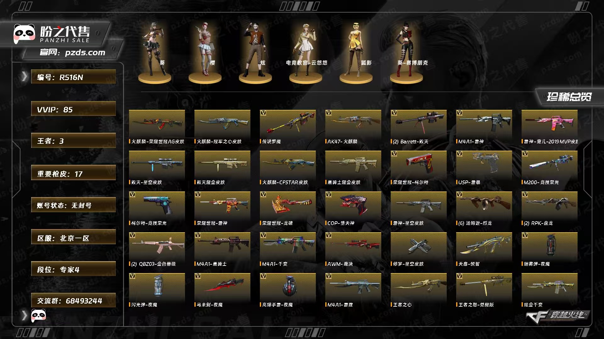 79v♥传说梦魇♥6烈龙♥竞技荣光套♥雷神宠儿♥qbz03金色蔷薇♥王者之心♥火麒麟荣耀世冠;USP-雷暴,荣耀世冠-柯尔特,电竞教官-云悠悠,RPK-盘龙,QBZ03-金色蔷薇,