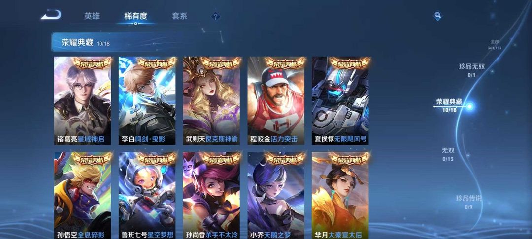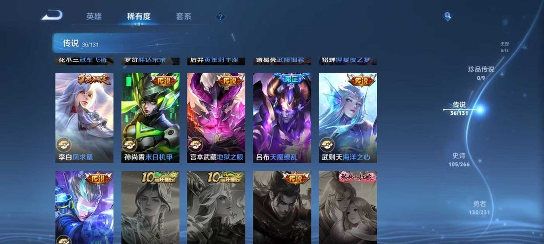 V10、550皮14水、吕布典藏-千魇归渊、云缨-神骥·越千峰、怪盗基德、伽罗星传说红枫、瑶典藏拾光映像、冥王哈迪斯、、龙年限定、齐天大圣