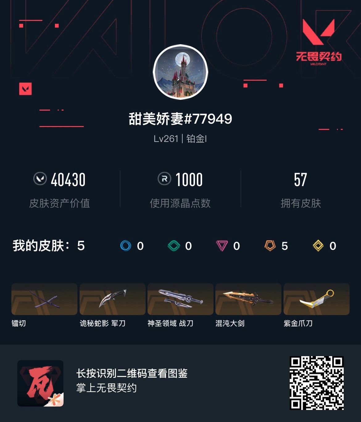 • 游戏区服:无畏契约-wegame / wegame / wegame