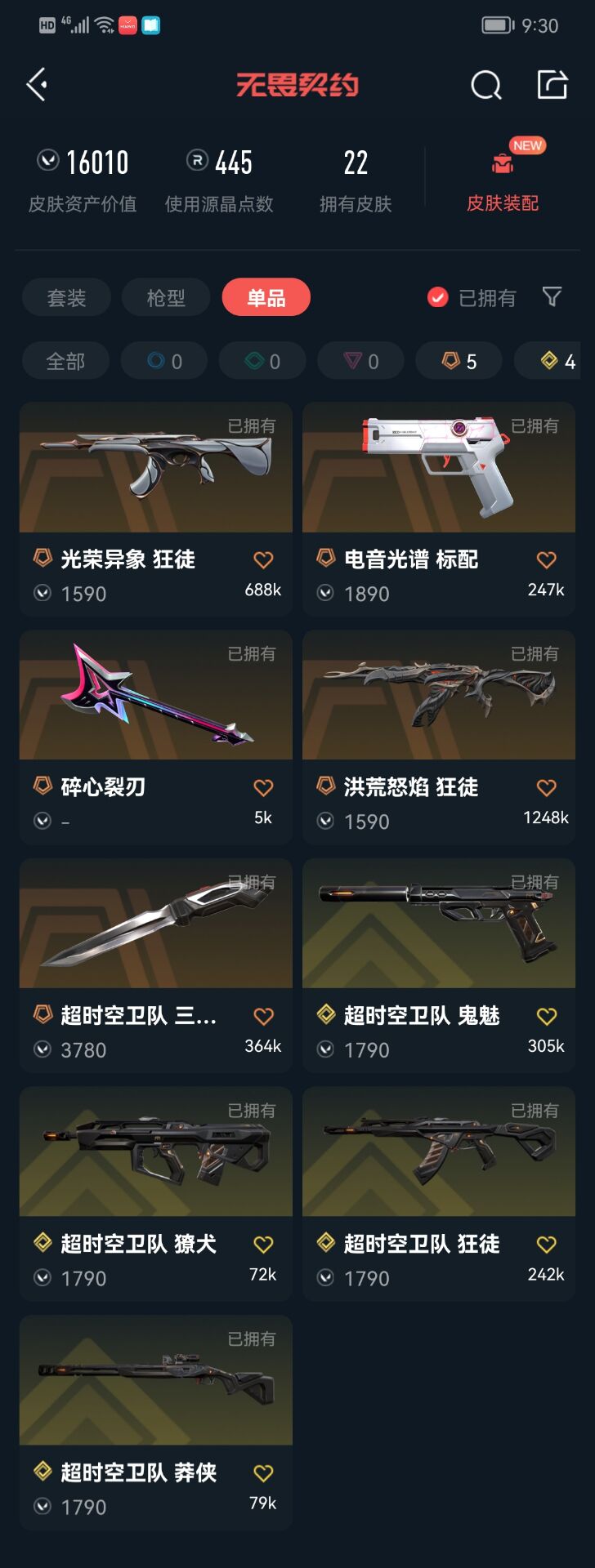 超时空卫队套 全满级//光荣异象 狂徒// 洪荒怒焰 狂徒//电音光谱标配//碎心裂刃