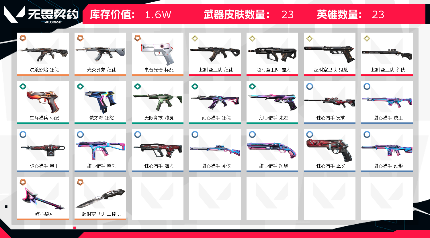 首页 > 租号大厅 > 无畏契约-wegame > wegame/wegame > 超时空卫队套 全满级//光荣异象 狂徒// 洪荒怒焰 狂徒//电音光谱标配//碎心裂刃
