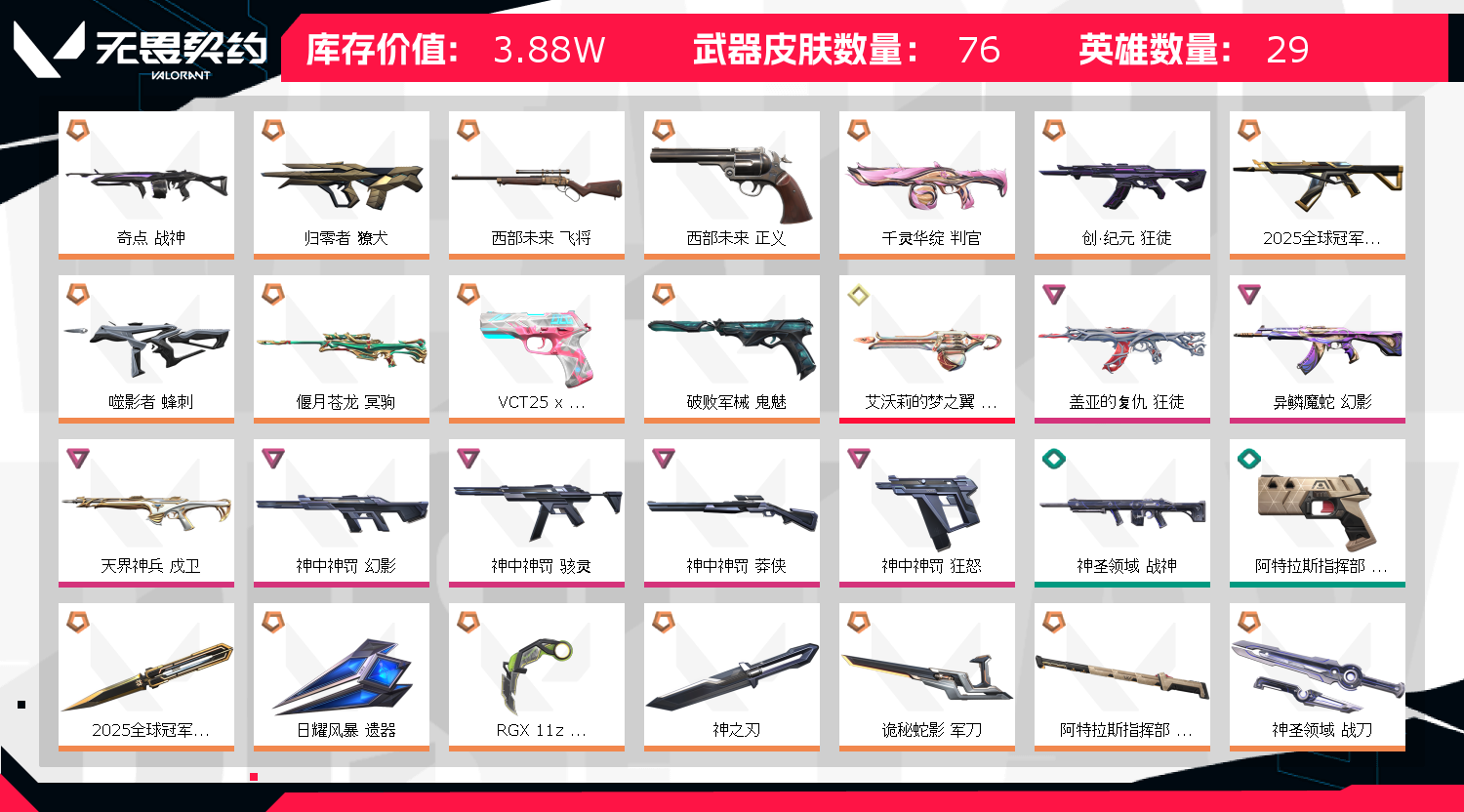 • 游戏区服:无畏契约-wegame / wegame / wegame