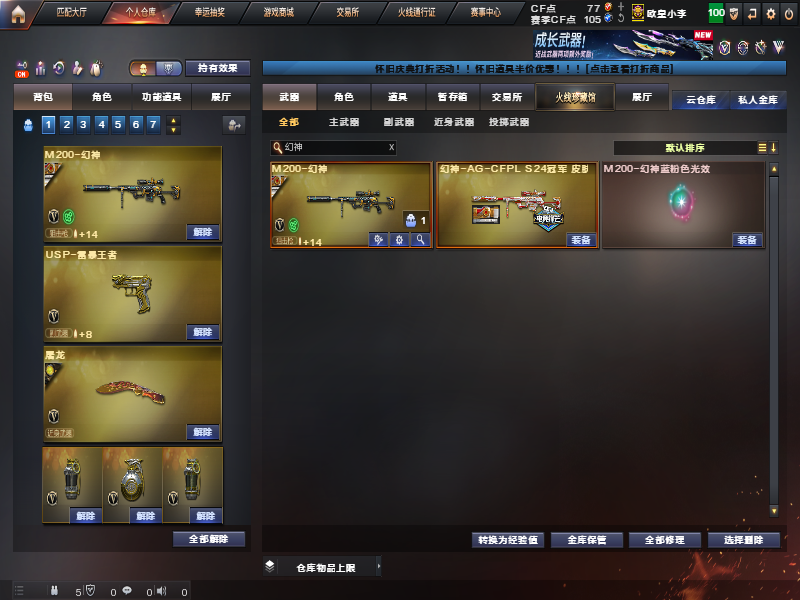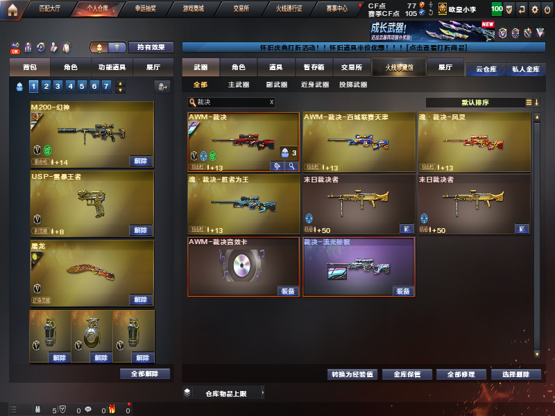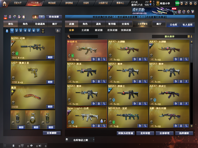 首页 > 租号大厅 > 穿越火线 > 网通区/河南一区 > 爆破生化全装号|影煞、传说辉光、王者雷暴Usp、幻神、G36C幻影、裁决三件套、毁灭三件套、王者星光