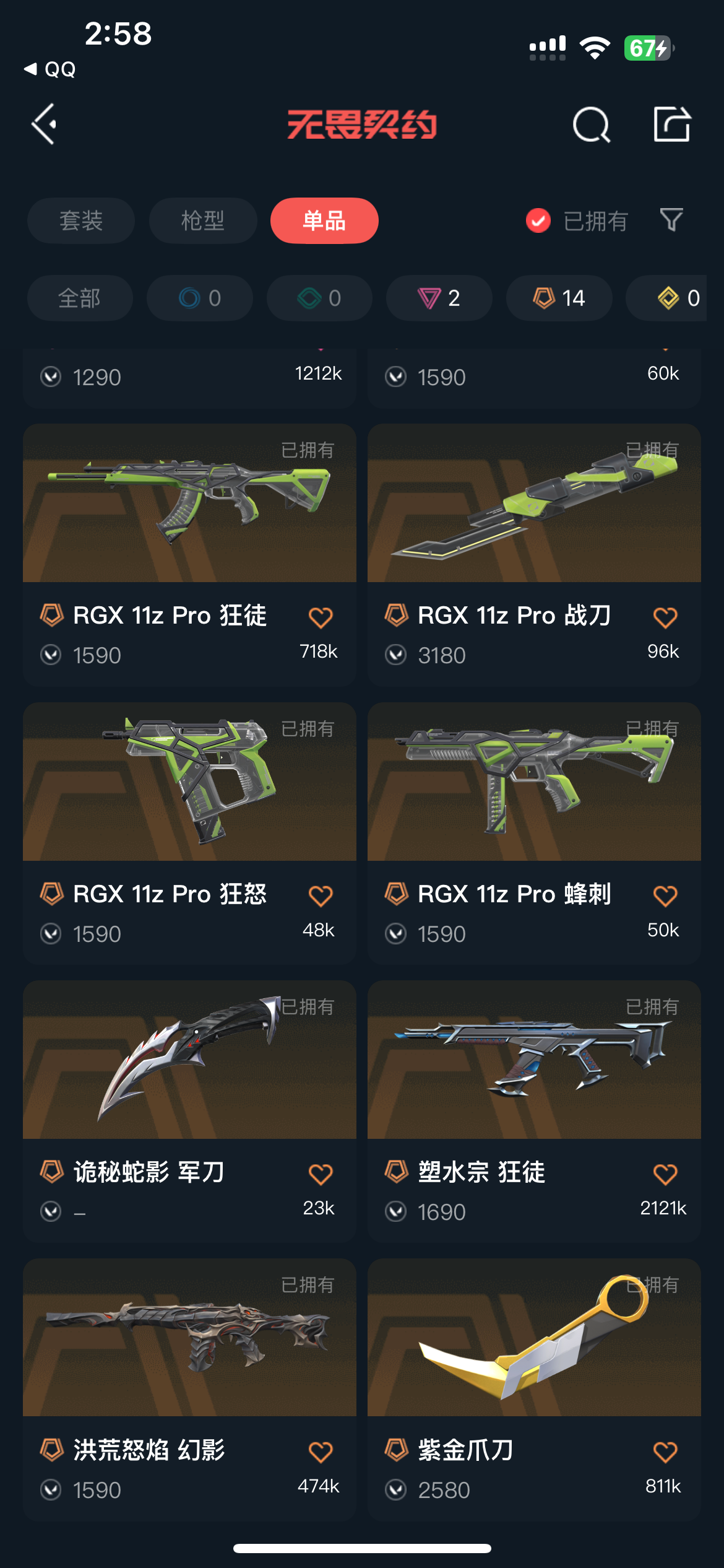 冻结请点击协助,会自动解冻,等几分钟重新登陆即可! 请勿挂机,游戏中挂机拉黑!!! 账号R点请勿使用,本店铺及时补充新套装,若使用R点无法升级新套装,攒R点辛苦,望谅解! 老板不要杀太多,现在风控的严重,杀多了会临时冻结,到时候我可能不在无法解冻!使用外挂脚本导致游戏账号封禁直接向平台提取ip地址! 本账号经过网络财产备案,一经发现直接报警处理立案追责,根据账号价值全额赔偿感谢支持谢谢合作谢谢合作!!!!禁止利用账号进行开挂、使用辅助违规软件诈骗等违规操作!;紫金爪刀,异鳞魔蛇 幻影,洪荒怒焰 幻影,RGX 11z Pro 狂徒,塑水宗 狂徒,天界神兵 鬼魅,奇点 正义,