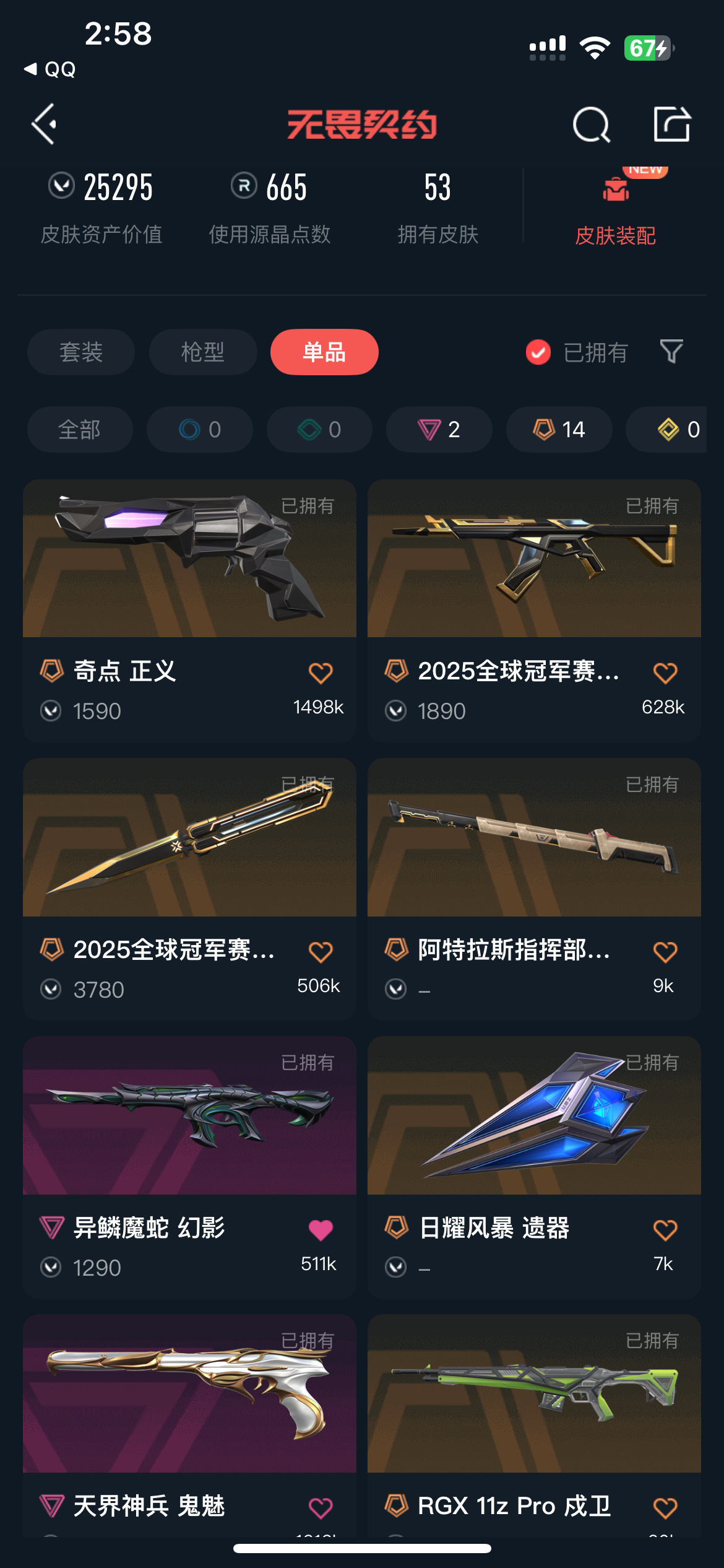 • 皮肤资产价值: 25295