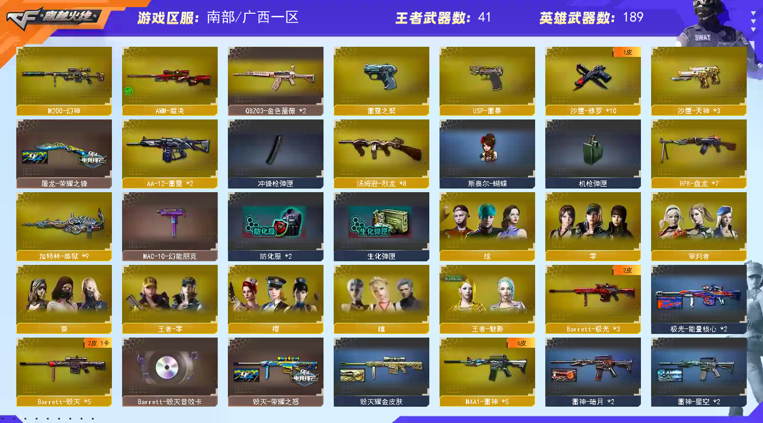 ⭐⭐⭐⭐⭐⭐⭐⭐⭐⭐⭐⭐⭐ ⭐ 国服神豪账号 欢迎您的体验 ⭐ ⭐⭐⭐⭐⭐⭐⭐⭐⭐⭐⭐⭐⭐ ❤️❤️❤️❤️❤️本号持续更新中 欢迎收藏此号❤️❤️❤️❤️❤️ ✨本号会时间紧跟官方更新最新皮肤和新枪,官方一旦有更新,本号会立刻跟进获得,让租客享受时间享受新枪新皮肤带来的快乐!(请收藏此号,后续方便找到)✨ 【英雄武器】_M200-幻神/Barrett-毁灭(4)/Barrett-极光(3)/barrett-金色蔷薇/Barrett-暗月传说(2)/雷霆之怒/王者之怒-觉醒版/AWM-天龙(5)/AWM-裁决/M4A1-雷神(5)/M4A1-死神(5)/M4A1-黑龙(3)/M4A1-龙血(2)/M4A1-千变/M4A1-黑骑士(4)/M4A1-武圣/M4A1-雷霆/M4A1-猎神(2)/M4A1-玫瑰精灵(5)/王者之魄-觉醒版/王者之幻-觉醒版/AK12-天启/AK47-火麒麟(6)/AK47-无影(4)/AK47-雷暴/AK47-麒麟(3)/AK47-黑鲨(2)/AK47-黑武士(10)/AK-47-猩红传说(6)/AK47-机械迷城/AK47-B-身先士卒/AK47-B-战士/AK47-B-战神/AN94-超新星/QBZ03-金色蔷薇(2)/王者之心-觉醒版/9A91-烈火/RPK-盘龙(7)/汤姆逊-烈龙(8)/AA-12-雷霆(2)/加特林-炼狱(9)/雷霆之契/沙鹰-天神(3)/沙鹰-修罗(10)/Glock18-武圣/USP-雷暴/麒麟刺(3)/龙啸(2)/擎天(4)/屠龙(11)/雷霆之锋/王者之锋-觉醒版/斩神刀-雷暴/高爆手雷-雷暴(5)/高爆手雷-雷霆(7)/烟雾弹-雷暴(5)/烟雾弹-雷霆(6)/闪光弹-雷暴(5)/闪光弹-雷霆(7) 【王者武器】王者之魄(2)/王者之戮/王者之圣/天启-悦智/超新星-悦享/王者之势(4)/王者之翼/玫瑰精灵-悦动(3)/王者之武(2)/王者之影/王者之怒(3)/王者之光(2)/王者之力/烈龙-悦心(2)/王者之魂(3)/王者之锋(2)/王者之啸/王者之刺/王者之击(2) 【小人枪】C.A.T/AWM-灵狐-15周年嘉年华/斯泰尔-蝴蝶/COP-旗袍/魔能飞环-曼陀罗 【其他重要武器】炫金超新星/炫金骑士/炫金火麒麟/炫金武士/炫金无影/炫金黑龙(2)/炫金千变/炫金雷神/炫金天龙(2)/炫金毁灭/M4A1-十二生肖·龙-雷神/M4A1-英雄-能量核心/黑武士-能量核心/M4A1-S-能量核心/M4A1-秘银赤龙(4)/M4A1-S-火种/AK47-大帝林肯/M4A1-紫狱(2)/9A91-平安夜/AK-103-火线13周年/AK-47-二次元/G3A3-SS-枪王排位(2)/黄金AK-47(2)/AK47-娜塔莎/红龙AK47/AK47-十二生肖-蛇/M4A1-狂欢-CFS/AK47-轮回(2)/M4A1-SS-枪王排位(2)/海浪AK47-浏览器/AK47-绚樱/HK417-赤龙/AK47-SS-枪王排位/M4A1-Guitar 炫彩/AK-103-红色悦动/AK47-破空冰刃(2)/HK417-红龙/AK47枪王排位II/AK47-烛龙/AK47-青龙/AK47-圣诞节[2019]/M4A1-破空冰刃/AK47-狂欢-CFS/M4A1-电音/M4A1-XS-翔龙/M4A1-PINK/AK47-枪娘/AK12-枪王排位/AK47-十年火线/M4A1-情人节2019/HK417-赤血龙魂/M4A1C-死亡之翼/QBZ03-烛龙/M4A1-十年火线/AK47-B-十周年/M4A1-樱/9A91-蓝色骑士/M4A1-肯德基/M4A1-XS-赤龙/AK47-樱花/9A91-2017万圣节/AK-12-CFS2017纪念版/AK47-苍龙/M4A1-战龙/AWM-恶棍-枪王排位(3)/Barrett-翔龙(2)/AWM-万圣节刀锋/M200-赤血龙魂(2)/凤凰之力/破天狂龙(2)/巴雷特-绚樱/巴雷特-情人节2020/M200 CheyTac-大圣/AWM-A枪王排位II/M82A1-青龙/M200-万圣节2018(2)/AWM-红色悦动/AWM-T/M200-涂鸦/AWM-2018圣诞/98K-蓝色骑士/AWM-枪娘/M82A1-飞龙在天/AWM-万圣节2019/M200-情人节2019(2)/98K-烛龙/AWM-十周年/雷蛇AWM/FN弩炮-CFS2017纪念版(2)/M200-圣诞/AWM-A-彩虹/AWM-Pink/凤凰之怒/破天九龙(4)/M200-万圣节/KAC-圣炎切割者III/KAC-赤烛(4)/MG3-翔龙/MK5-枪王排位/EVOIII- 曹操/斯太尔-能量核心/EVO III-赤血龙魂(6)/MK5-圣诞/EVOⅢ-黑金传说/死亡之眼(2)/斯泰尔-巧克力/斯泰尔-CFS2017纪念版/神圣爆裂者-末日III/Spas-12-黑金/SPAS-12-雷电核心/沙鹰-枪王排位(6)/新USP-枪王排位奖励(3)/USP-黑大圣/愤怒公牛左轮-枪王排位(2)/COP-十二生肖-蛇/COP 357--绚樱(2)/修罗-摸金校尉/Anaconda-万圣节2019/Cop357-赤龙/Anaconda-雷电核心(2)/Anaconda-炽焰核心(2)/MAC-10-涂鸦/沙鹰-雷蛇/沙鹰-青龙/COP 357-青龙(2)/沙鹰-万圣节2018(2)/凤凰之灵/凤凰之火/招财猫-枪王排位/丛林匕首-枪王排位(2)/蝴蝶刀-枪王排位/虹光女皇利刃-枪王排位/丛林匕首-卧龙(4)/鹰爪-枪王排位(2)/尼泊尔军刀-9周年/军用铁锹-飞龙在天(2)/啸天/收割者-枪王排位/军用铁锹-赤龙/闪光弹-枪王排位(4)/惨叫鸡高爆手雷(2)/手雷-能量核心/闪光弹-小乔/强化版迅捷虫手雷(2)/红色诅咒娃娃手雷 【重要武器皮肤】毁灭-荣耀之怒/毁灭耀金皮肤/极光-能量核心/天龙-CFSTAR/天龙-秘银/天龙-能量核心/火麒麟-CFSTAR/无影-能量核心/无影耀金皮肤/AK47-B-常胜将军-曹操/AK-47-雷神/雷神-荣耀之魄/雷神-暗月/雷神-能量核心/雷神-星空/黑龙-暗月/黑龙-能量核心/战神-流金岁月皮肤/战神-紫绶金章皮肤/战神-粉色甜心皮肤/修罗-CFSTAR/修罗-能量核心/屠龙-荣耀之锋 【重要光效】王者之魄金色光效/王者之心金色光效/王者之影金色光效/王者之怒金色光效/王者之光金色光效/王者之力金色光效/炼狱-悦蓝金色光效/王者之锋金色光效/王者之啸金色光效/AK47-黑武士蓝色光效/M4A1-死神红绿色光效/M4A1-黑龙蓝粉色光效/Barrett-极光红绿光效/AWM-天龙红绿色光效/AWM-天龙蓝色光效/加特林-炼狱紫橙光效/RPK-盘龙红绿色光效 【重要音效卡】M4A1-黑骑士音效卡/Barrett-毁灭音效卡 【重要戒指】8周年戒1/8周年戒2/15周年限定戒指/龙眼(死神)/龙眼(鹰)/金蛇戒/银蛇戒/18赛季纪念戒指-耀金/20赛季纪念戒指-耀金/21赛季纪念戒指-耀铜(食指)/21赛季纪念戒指-耀银(拇指)/22赛季纪念戒指-耀铜(食指)/22赛季纪念戒指-耀银(拇指)/23赛季纪念戒指-耀银(拇指)/24赛季纪念戒指-耀铜(食指)/24赛季纪念戒指-耀银(拇指)/25赛季纪念戒指-耀铜(拇指) 【拥有重要玩偶】黄金幸运猪猪玩偶;USP-雷暴,RPK-盘龙,QBZ03-