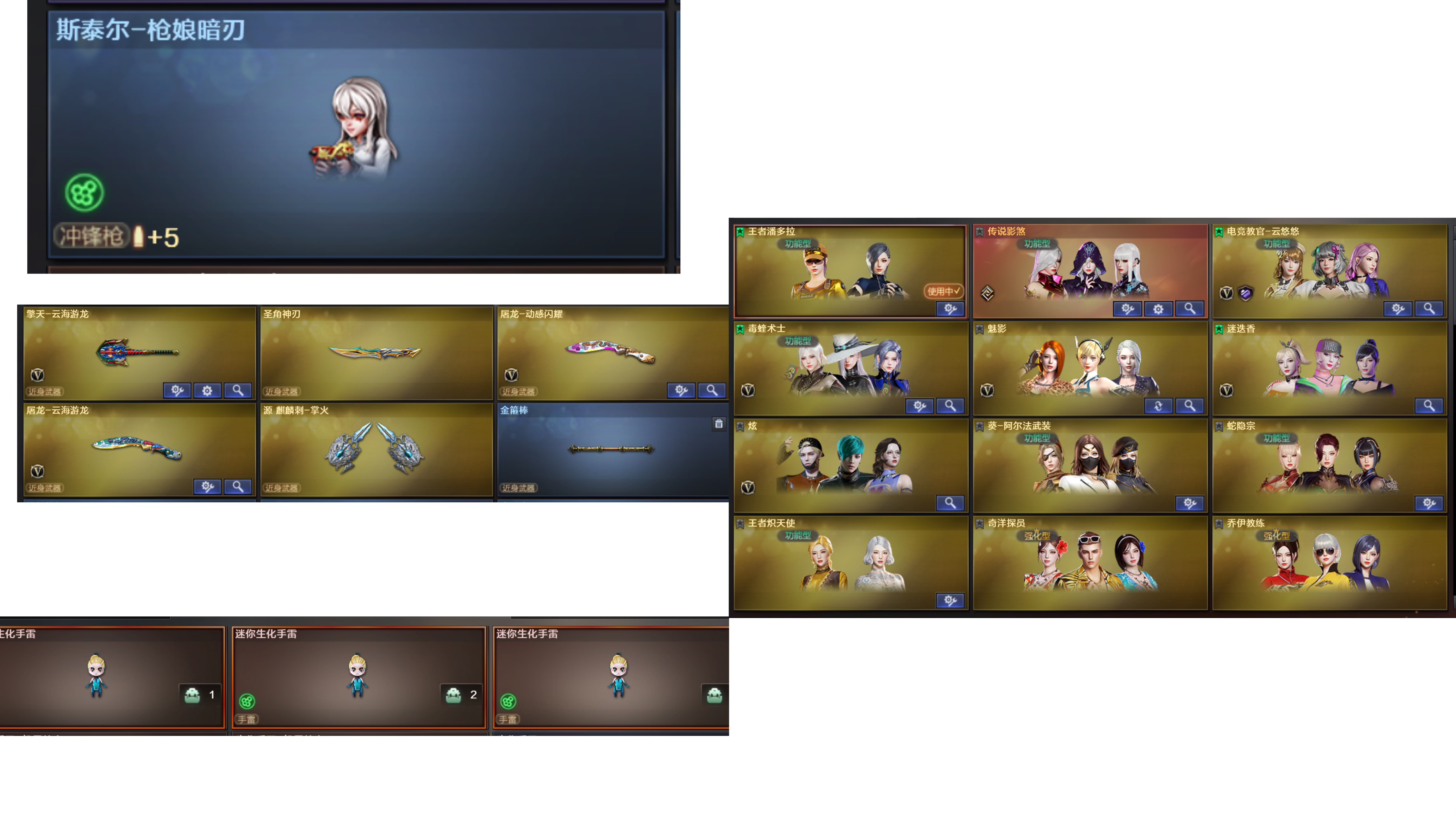 158V 生化全装 爆破全装 人物:影煞 毒蝰 云悠悠 炫等等 狙:幻神 星神 幽瞳 灵眸 毁灭 极光 裁决 金蚀等等 步枪:雷神 火麒麟 白虎 蔷薇 玄武 G63C幻影 天戎 玲珑 天罚 九霄圣角等等 手枪:幽冥 破晓 cop云龙 cop幻灵 cop堕天使 usp雷暴 柯尔特竞技荣光 柯尔特荣誉世冠 破空抢刃夜魔 雷霆之契等等 刀:屠龙 擎天 蝴蝶刀 夜魔 麒麟刺 龙啸 圣角神刃 云龙扇等等 机枪:炼狱 6盘龙 HK21等等 冲锋枪:6盘龙 斯泰尔蝴蝶跟枪娘 毒蜂 清道夫 mk5喷火龙等等 投掷武器全都有 弹夹全有 爆破3防 生化全套;USP-雷暴,荣耀世冠-柯尔特,传说幽冥,炽芒蝶刃,传说影煞,电竞教官-云悠悠,RPK-盘龙,