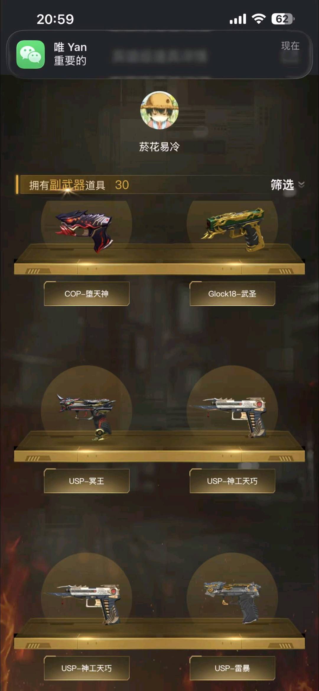 生化爆破超爽号,4传说 生化装备全都有 生化角色全都有 爆破g36c幻影 法玛斯天绒 伽利尔天袭 其他也基本全都有;USP-雷暴,柯尔特-冠军之特,炽芒蝶刃,Knife-冠军之刃,沙漠玫瑰,传说影煞,隼,