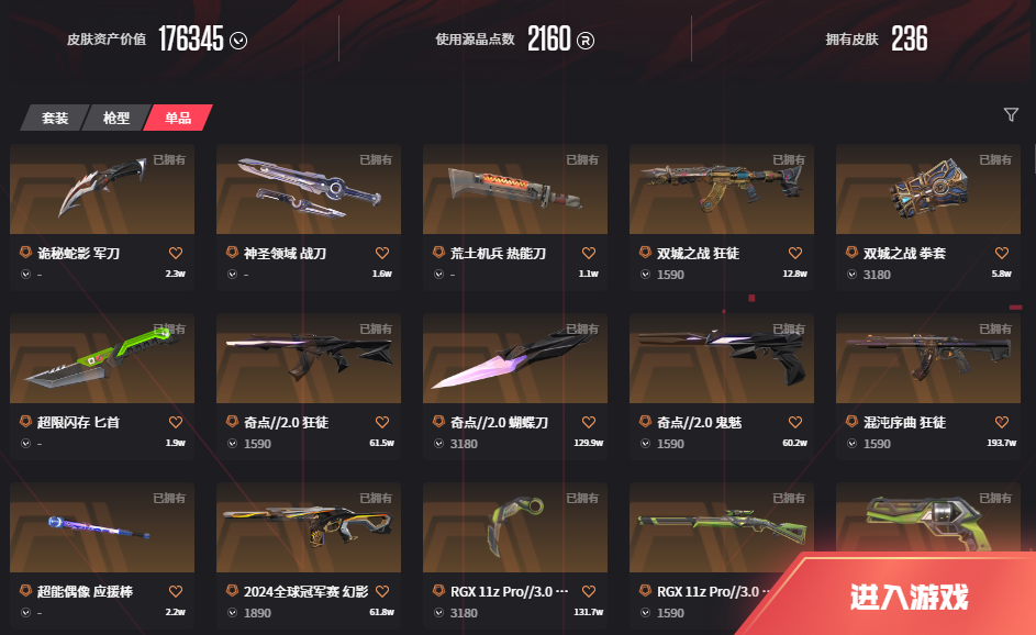 • 武器皮肤数量: 236