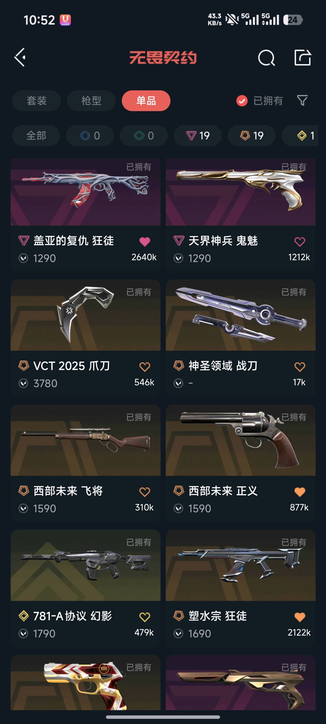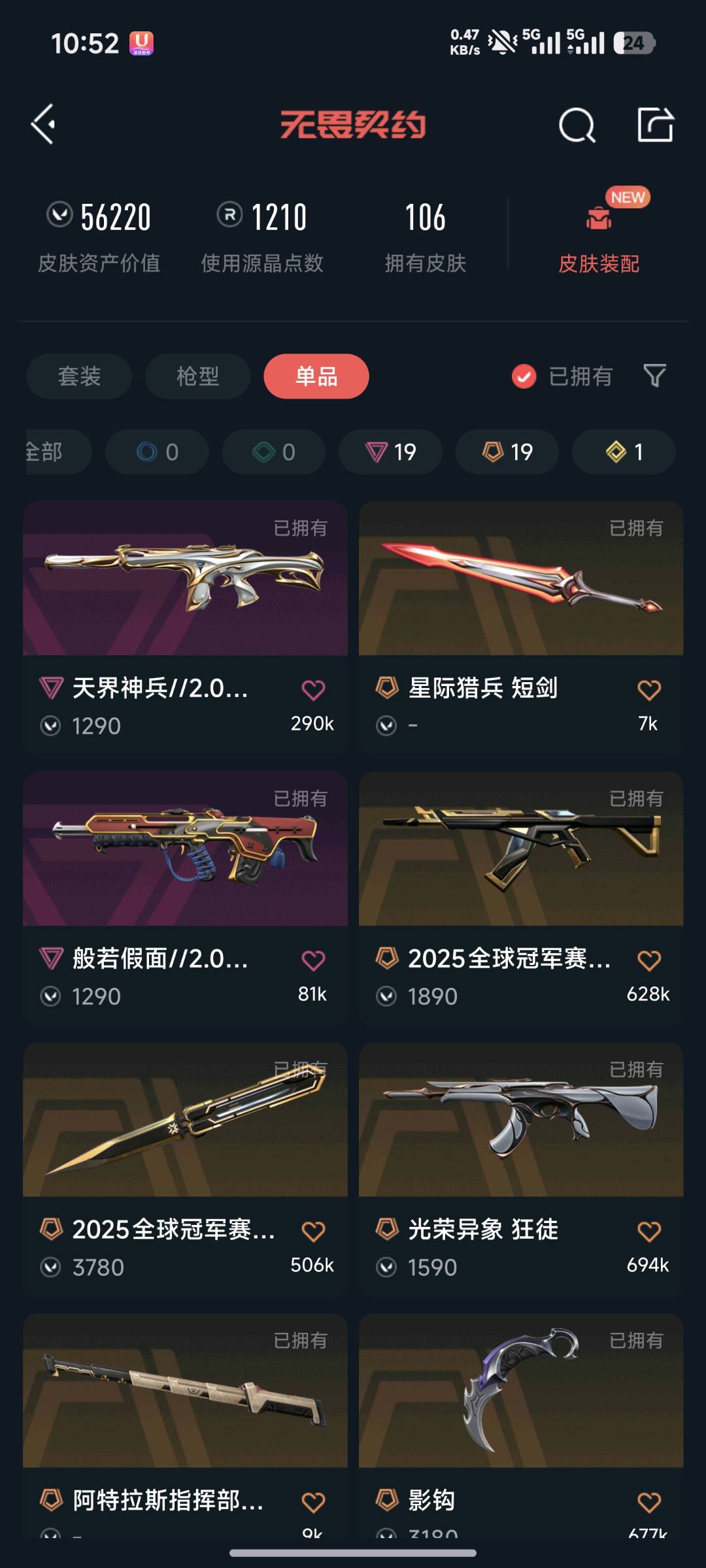黄金二 全英雄 蝴蝶刀 爪刀 混沌 溯水 盖亚 威龙 光荣 25冠军 侦查 24冠军幻影