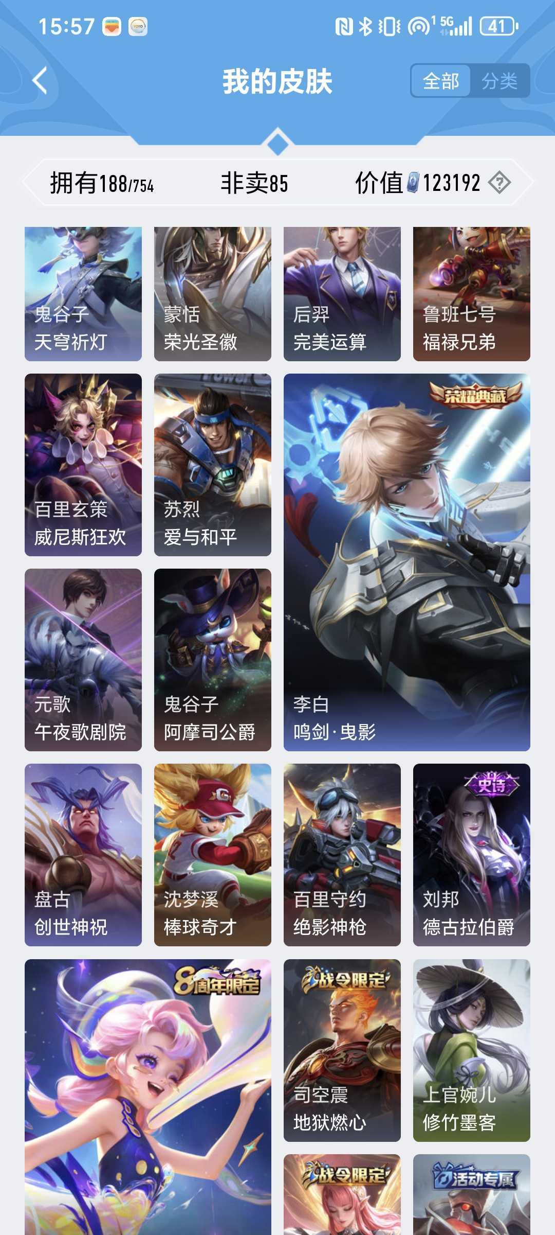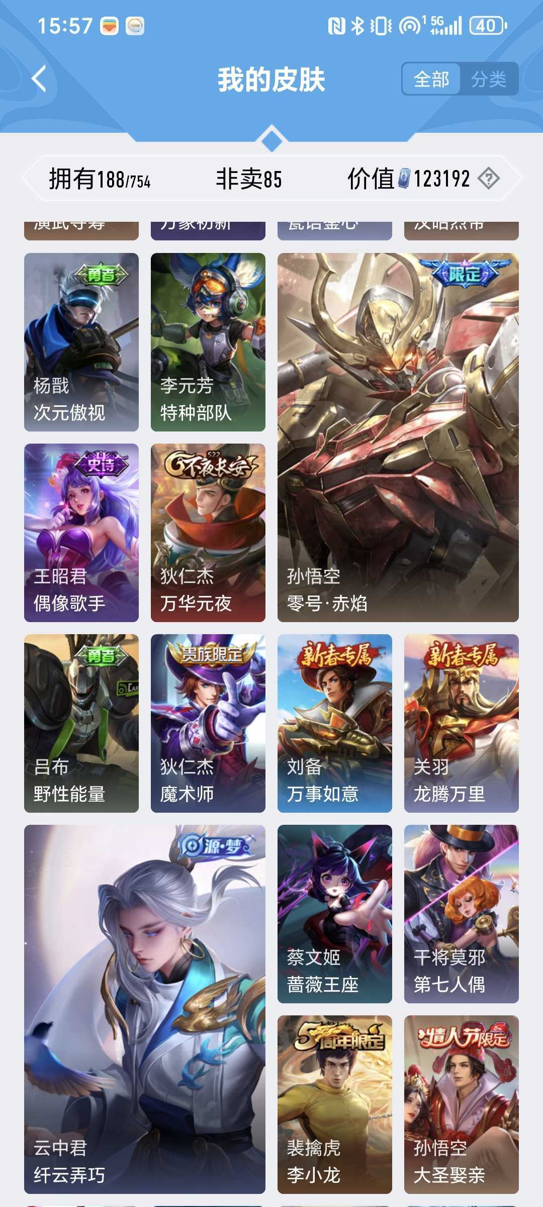 【非沄直接上号】极品V10★三历史国标★430皮★六典藏★诸葛亮新典藏★虎年五限定★鸣剑戈影★活力突击️★多限定