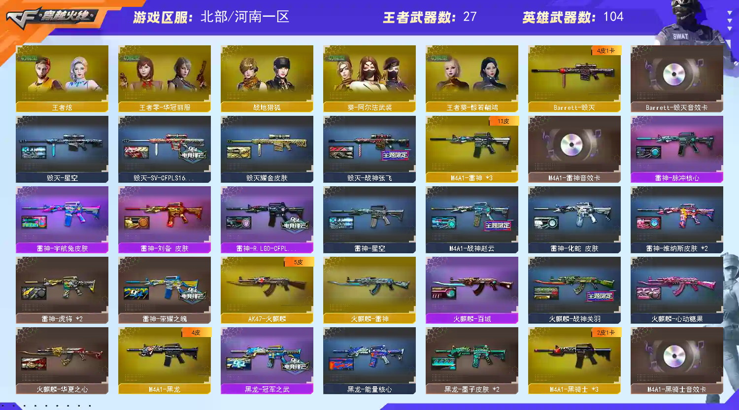 首页 > 租号大厅 > 穿越火线 > 网通区/河南一区 > 传说影煞星骇3炽芒蝶刃幻神7皮带卡星火新AG24星神冠军巅峰皮三件套裁决三件法玛斯幻影套副武器满配