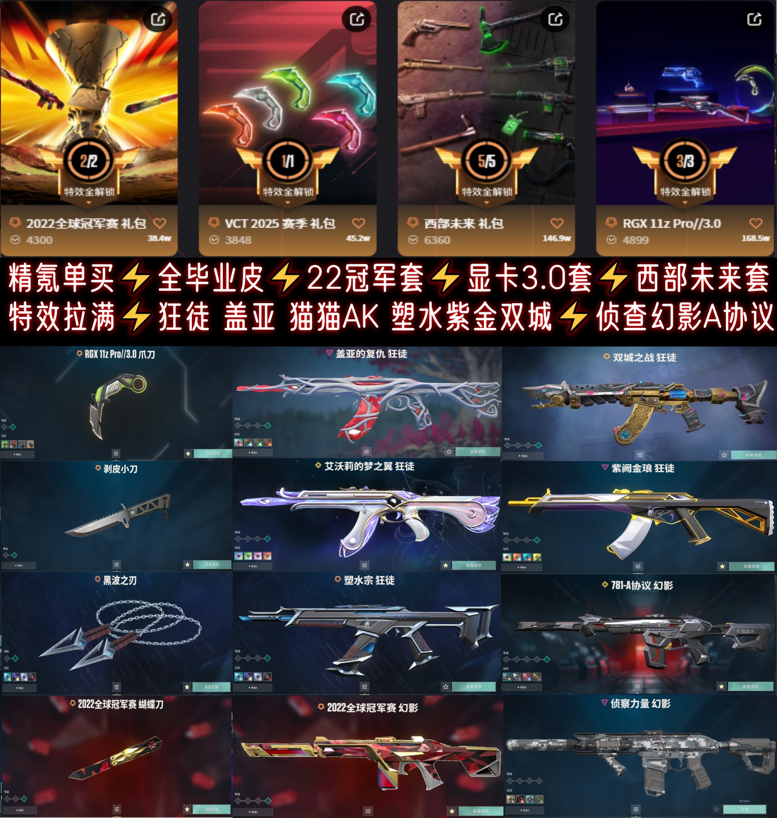 精氪单买⚡全毕业皮⚡特效拉满⚡显卡爪剥皮刀VCT25爪黑波⚡盖亚猫猫AK塑水双城超时空⚡侦查22幻影