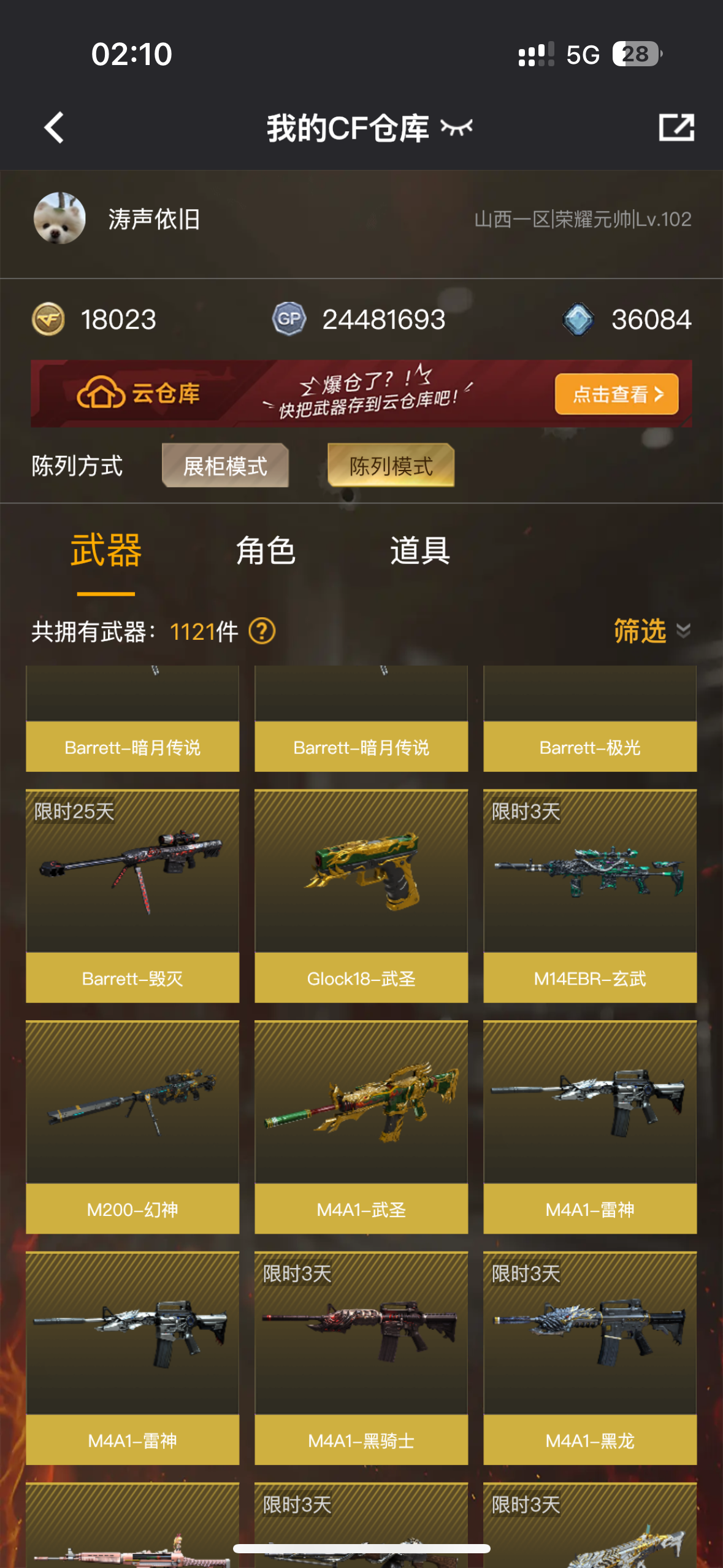 除了轮椅枪一般武器基本都有;QBZ03-金色蔷薇,M200-幻神,