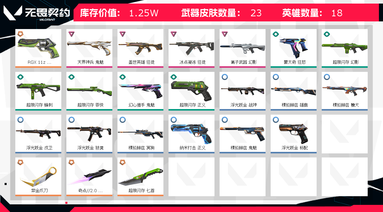 【禁赛全网拉黑 炸鱼轻点】 注意事项:出现冻结,请点击协助处理,我们看到后会及时解冻。等5-10分钟重新登陆即可 郑重声明:若出现 账号封禁/毁号等情况,本人商户多年,所属账号已在派出所备案,经过网络财产备案价值! 使用外挂脚本导致游戏账号封禁直接向平台提取ip地址!一经发现直接报警处理立案追责,根据账号价值追究其法律责任! 请租客文明游戏,不要开挂或挂机!切勿心存侥幸!因无畏契约检测严格,为防止后台插件导致封号,上号前请务必重启电脑! 1.登陆界面稍等2分钟会上去(自动登录)老板不要着急,一次不行多来几次wegame界面要耐心等2分钟 2.密令会自动输入如果一次不成功多来几次。 3..进入wegame后到弹短信验证处,关闭掉,重新下载无畏契约这个游戏即可成功上号,记住。这个方法百分百上号成功!就是进入wegame重新下载无畏契约游戏 !!!百分百成功!! 4.请及时续租不要挂机,如果不需要续租了,临近结束不要再开赛,所以请及时续租,导致禁赛的一律拉黑 。 5.祝老板玩的愉快,喜欢可以收藏关注;紫金爪刀,天界神兵 鬼魅,