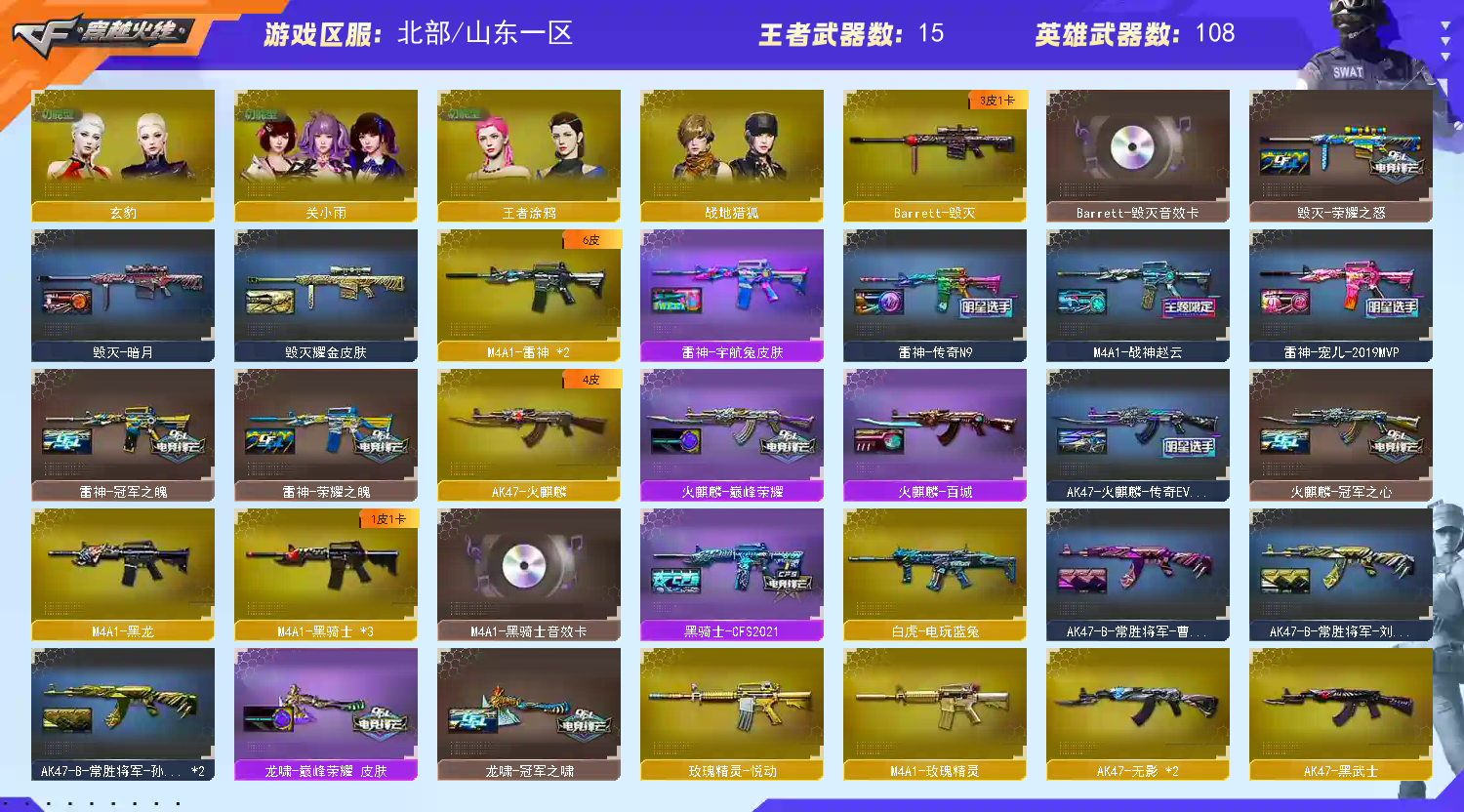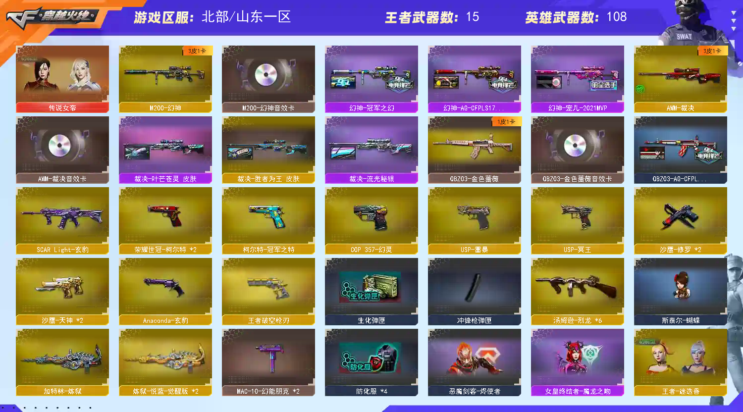 全装音效卡齐全,4赛季枪王之王名片牌面拉满 号主有话说:排位赛全程需正常完成,中途退出导致禁赛必追究! *账号可打字,全程正常交流,禁止广告以及违规消息,导致禁言绝对追究到底! *无故撤单退单,永久拉黑 *本账号已经过虚拟财产认定,请各位科技大神高抬贵手。请素质租号,文明游戏,谢谢大家配合!!如若使用科技或鼠标宏等特殊外设导致账号出现问题必追究法律责任!<<<封号可查具体违规时间,责任到人>>> 喜欢的老板收藏一下,方便下次找到!;USP-雷暴,荣耀世冠-柯尔特,柯尔特-冠军之特,传说女帝,QBZ03-金色蔷薇,M200-幻神,