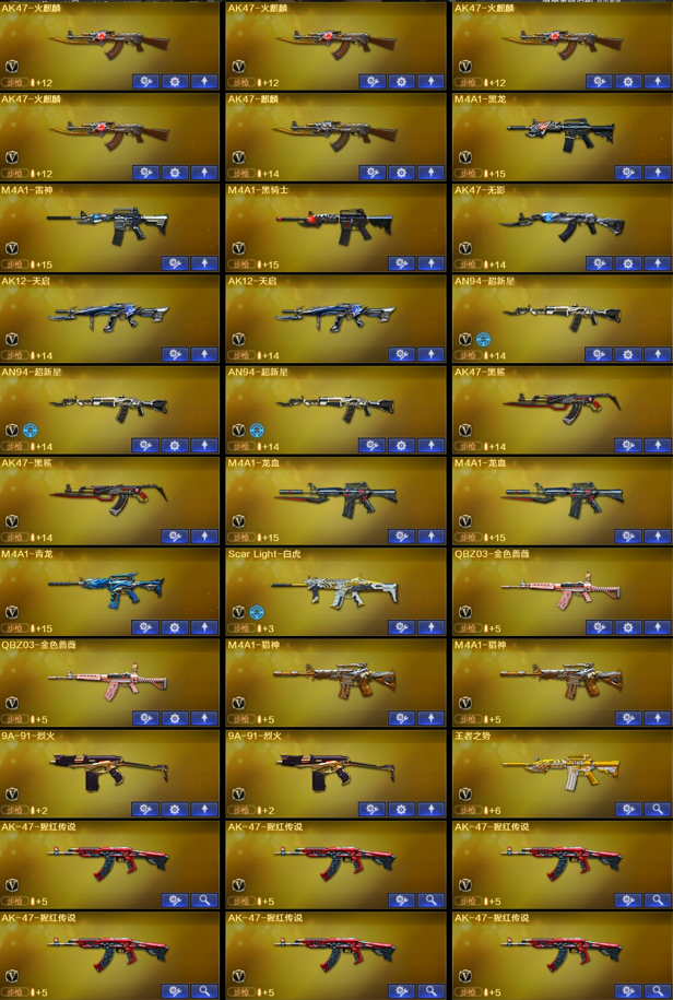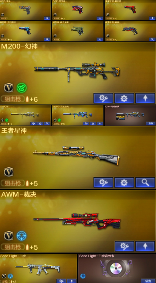 【稀有武器】:M200-幻神/ScarLight-白虎/M4A1-青龙/USP-雷暴/COP-堕天神/破空枪刃-夜魔/柯尔特-电竞装甲/柯尔特-竞技荣光/荣耀世冠-柯尔特/QBZ03-金色蔷薇(2)/AK47-火麒麟(4)/AK47-麒麟/M4A1-黑龙/M4A1-雷神/M4A1-黑骑士/AK47-无影/Barrett-毁灭(3)/Barrett-极光(2)/AWM-裁决/M200-竞技荣光/RPK-盘龙/加特林-炼狱/汤姆逊-烈龙(6)/AA-12-雷霆/斩神刀-雷暴/马来剑-夜魔/幻灵之锋/擎天-竞技荣光 【王者武器】:王者之怒-觉醒版/王者之光-觉醒版/王者幻神-觉醒版/王者星神-觉醒版 【热门角色】:电竞教官-云悠悠/迷迭香/雨棠/炫/魅影/王者-葵-貂蝉/王者玲珑-小乔/职业选手/潘多拉 【热门音效卡】:Scar Light-白虎音效卡/M4A1-雷神音效卡(2)/Barrett-毁灭音效卡/M4A1-黑骑士音效卡/AK47-火麒麟音效卡/Barrett-极光音效卡 【热门皮肤】:幻神-周瑜皮肤/屠龙-荣耀世冠AG(2)/雷神-荣耀世冠AG/雷神-宠儿-2019MVP/屠龙-荣耀之锋/毁灭-荣耀之怒 【其他亮点】:斯泰尔-蝴蝶;USP-雷暴,荣耀世冠-柯尔特,电竞教官-云悠悠,RPK-盘龙,QBZ03-金色蔷薇,M200-幻神,Scar Light-白虎,