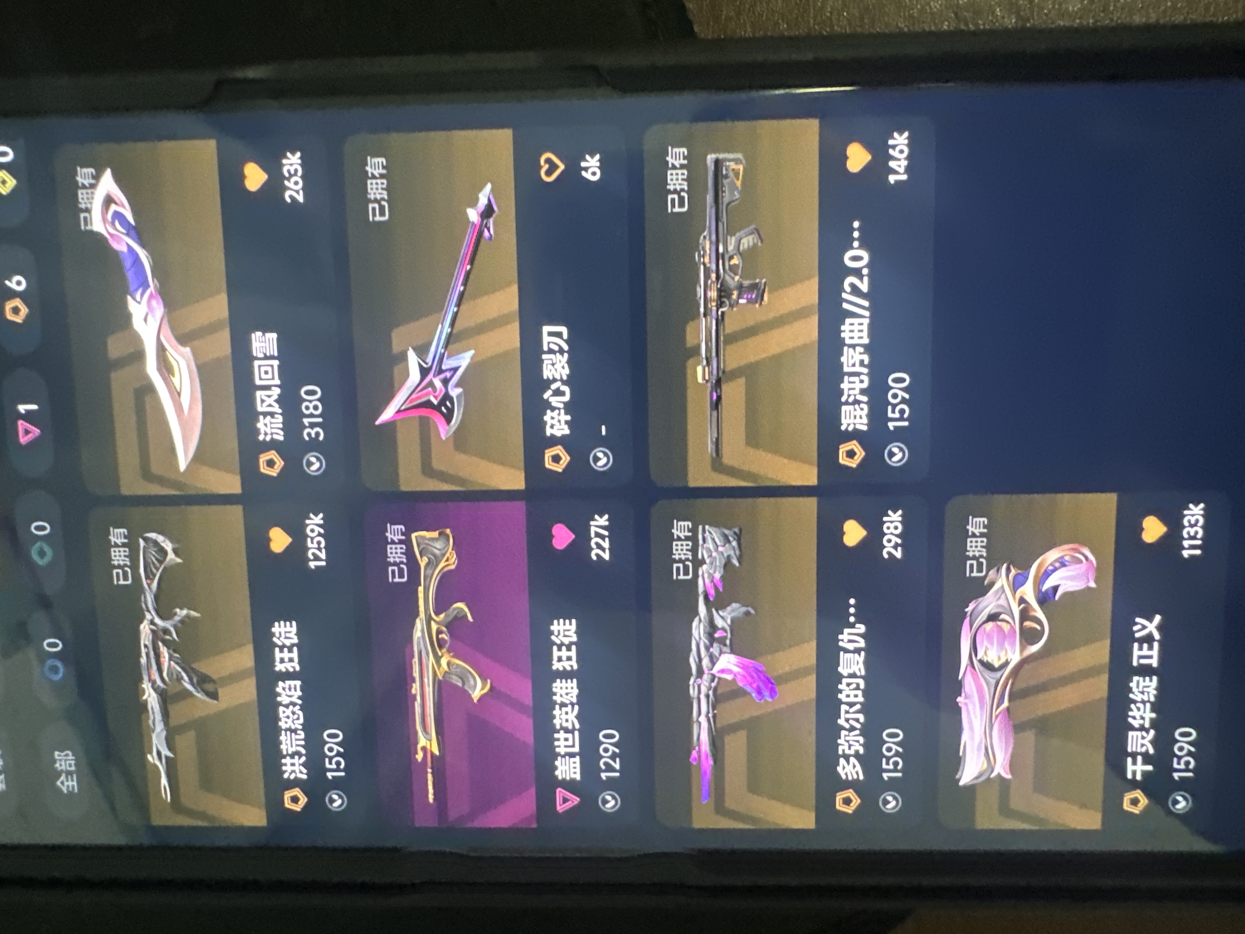 流风回雪✅猴子ak✅流脓ak✅多弥尔ak☑️混沌m4✅莲花正义✅
