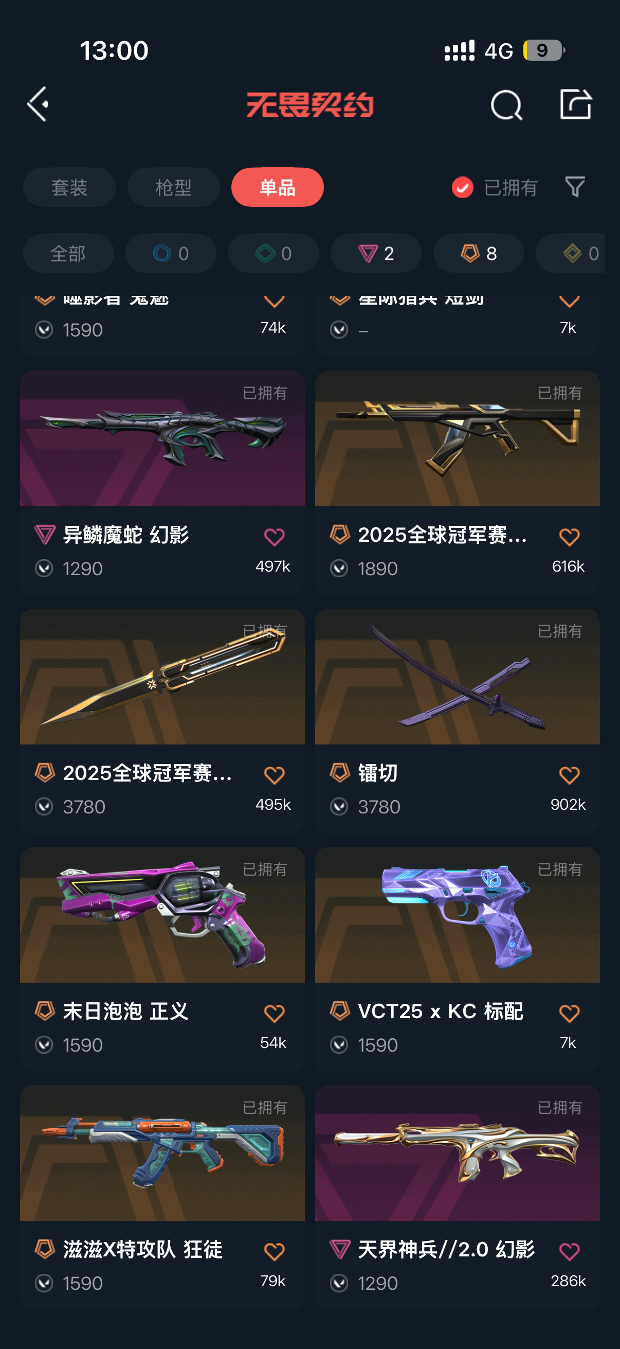 黄金III,,甜心猎手、异鳞魔蛇、2025全球冠军赛、末日泡泡、VCT25 x KC标配、天界神兵