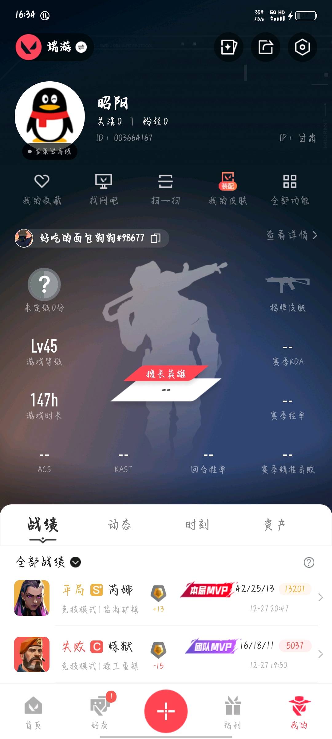 • 游戏区服:无畏契约-wegame / wegame / wegame