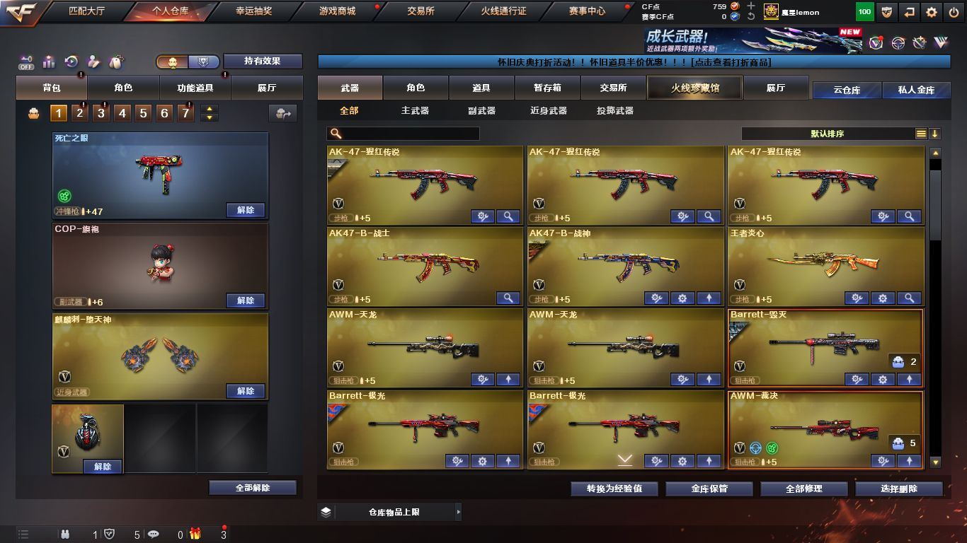 【M200-幻神】【AWM-裁决】【USP-雷暴】【COP-堕天神】【3盘龙】【6烈龙】【2炼狱】【M4A1-雷神(2)+雷神-荣耀之魄+雷神-虎将+雷神-暗月+M4A1-雷神音效卡】【AK47-火麒麟+火麒麟-CFSTAR+火麒麟-AG+AK47-火麒麟音效卡】【Barrett-毁灭+毁灭-星空+Barrett-毁灭音效卡】【M4A1-黑骑士+黑骑士-暗月+M4A1-黑骑士音效卡】【葵/魅影/春/迷迭香/雅典娜/王者玲珑/铁骑荣耀/空/灵狐者-黄金海岸】【Barrett-极光(2)/Barrett-朱雀/AWM-天龙(2)/M4A1-黑龙/M4A1-千变/M4A1-武圣/M4A1-夜魔/M4A1-猎神/M4A1-玫瑰精灵/王者之魄-觉醒版/王者之势-觉醒版/王者之幻-觉醒版/AK12-天启/王者炎心-觉醒版/AK47-无影(2)/AK47-雷暴/AK47-黑鲨/AK47-黑武士/AK-47-猩红传说(7)/AK47-B-战士/AK47-B-战神/王者之心-觉醒版/AA-12-雷霆/沙鹰-天神(4)/沙鹰-修罗(2)/Glock18-武圣/破空枪刃-夜魔/麒麟刺/麒麟刺-堕天神/龙啸/龙啸-堕天神/擎天/屠龙(4)/雷霆之锋/马来剑-夜魔/斩神刀-雷暴】【M4A1-雷神-精英刀锋/巴雷特-零-水下丽影(3)/M37-葵/COP-旗袍】【极光-能量核心+天龙-能量核心】【无影-暗月+无影-能量核心】【黑龙-暗月+黑龙-能量核心】【战神-流金岁月皮肤+战神-紫绶金章皮肤+战神-粉色甜心皮肤】【修罗耀金皮肤】【天神-暗月】【黄金幸运猪猪玩偶】;USP-雷暴,RPK-盘龙,M200-幻神,