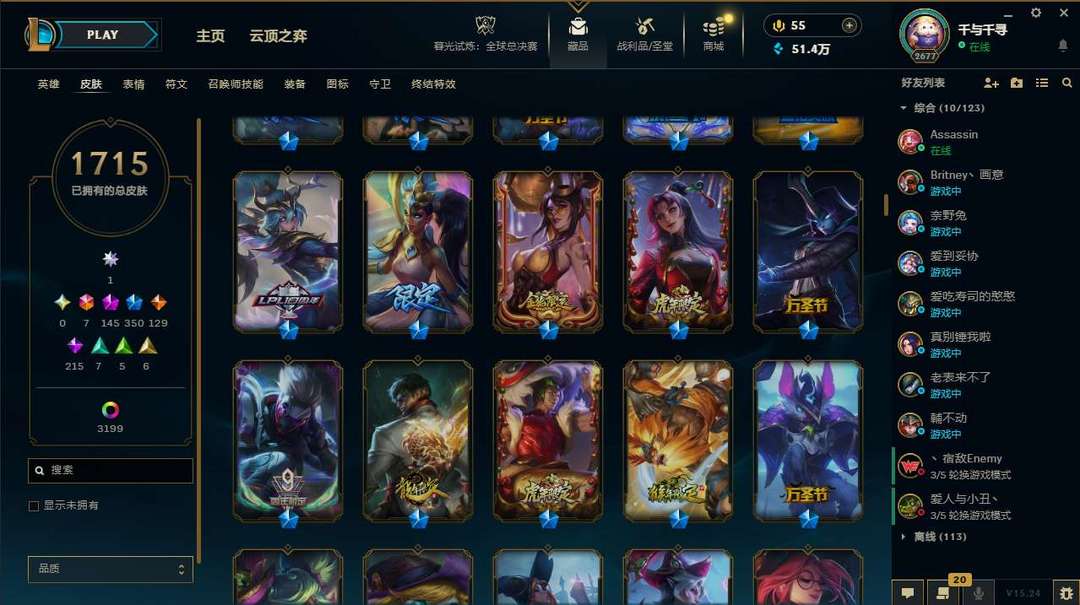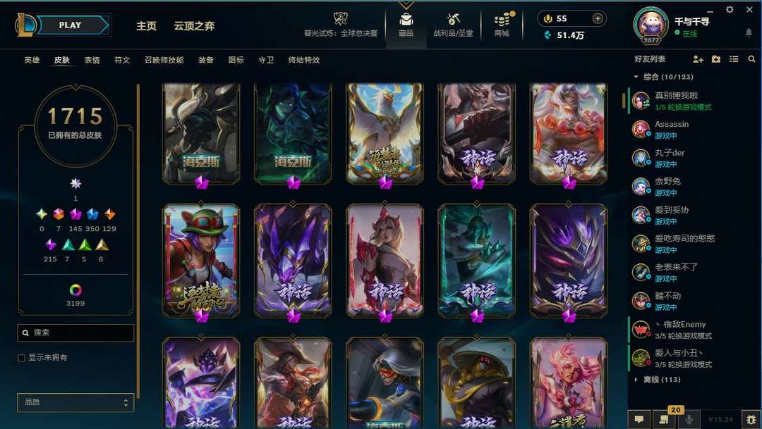 1725皮3199炫彩177至臻全海克斯❤殿堂阿狸❤四色龙虾❤莲花冰桶青年