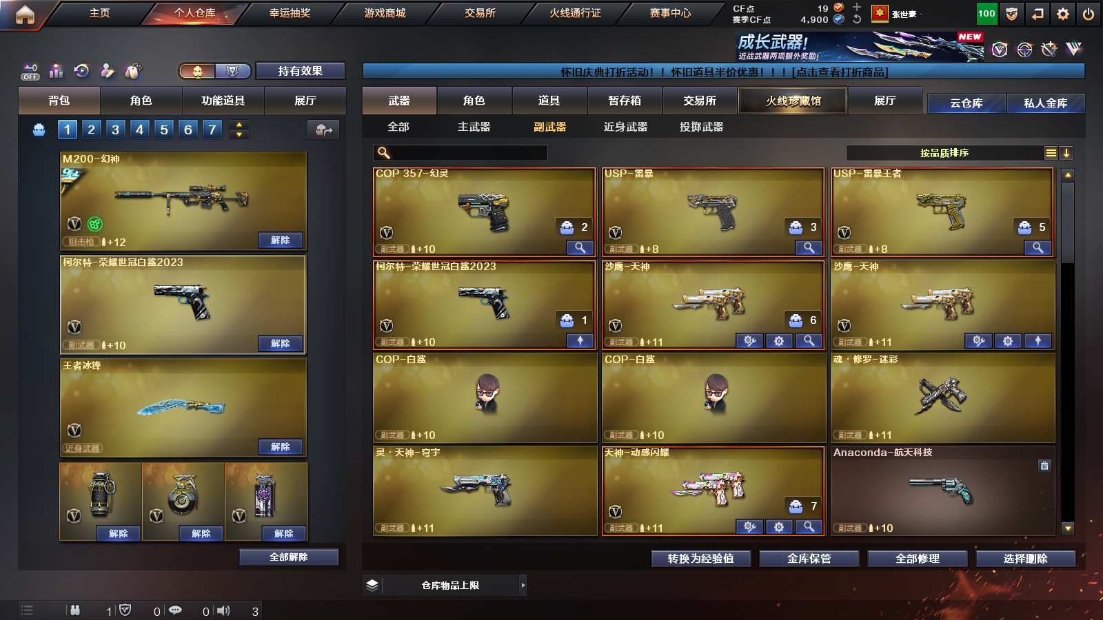 文明租号谢谢;USP-雷暴,USP-雷暴王者,柯尔特-荣耀世冠白鲨2023,隼,QBZ03-金色蔷薇,G36C-幻影,M200-幻神,