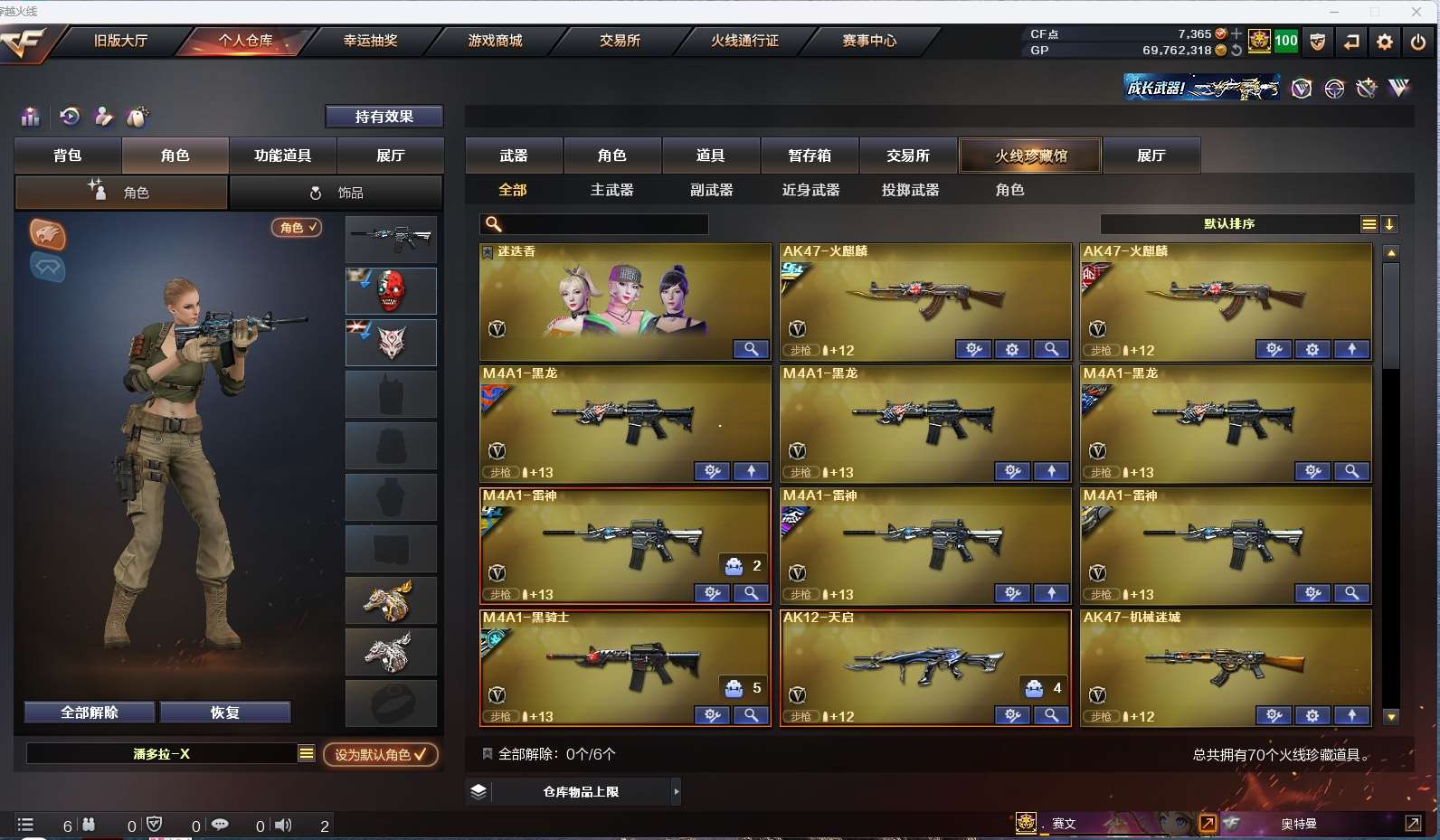 幻神三件套 】 【m200幻神+音效卡+幻神-ag17冠军+幻神-黄忠】 【qbz金色蔷薇】 【火麒麟+音效卡】 【黑龙】 【雷神+音效卡+雷神-白鲨14冠军+雷神-荣耀之魄】 【黑骑士+音效卡+白马银呛】 【毁灭+音效卡+毁灭-荣耀之怒】 【极光】 【裁决】 【王者之怒】 【天启 机械迷城】 【6手呛 修罗*5 天神】 【15近战 屠龙*4 龙啸*2 擎天*4 麒麟刺 幻灵之锋 王者之锋 王者之啸】 【手雷*3 竞技荣光雷 幻灵雷 云龙雷】 【角色 迷迭香】 【幻神音效卡 黑骑士音效卡 雷神音效卡 毁灭音效卡 火麒麟音效卡】 【虎牙炫彩背包 xrock炫彩背包 炫彩背包 lgd炫彩背包】;QBZ03-金色蔷薇,M200-幻神,