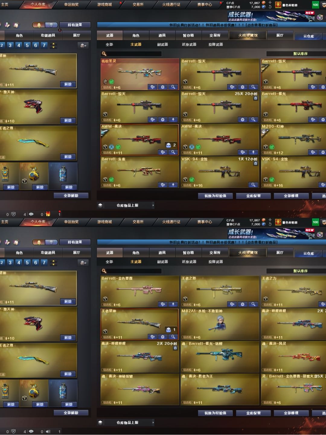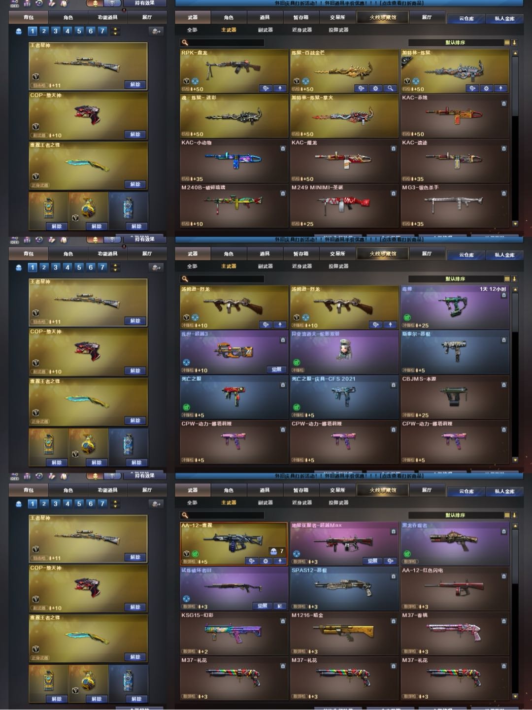 喜欢请收藏哦;荣耀世冠-柯尔特,电竞教官-云悠悠,王者沙漠玫瑰,妮妮,RPK-盘龙,QBZ03-金色蔷薇,M200-幻神,