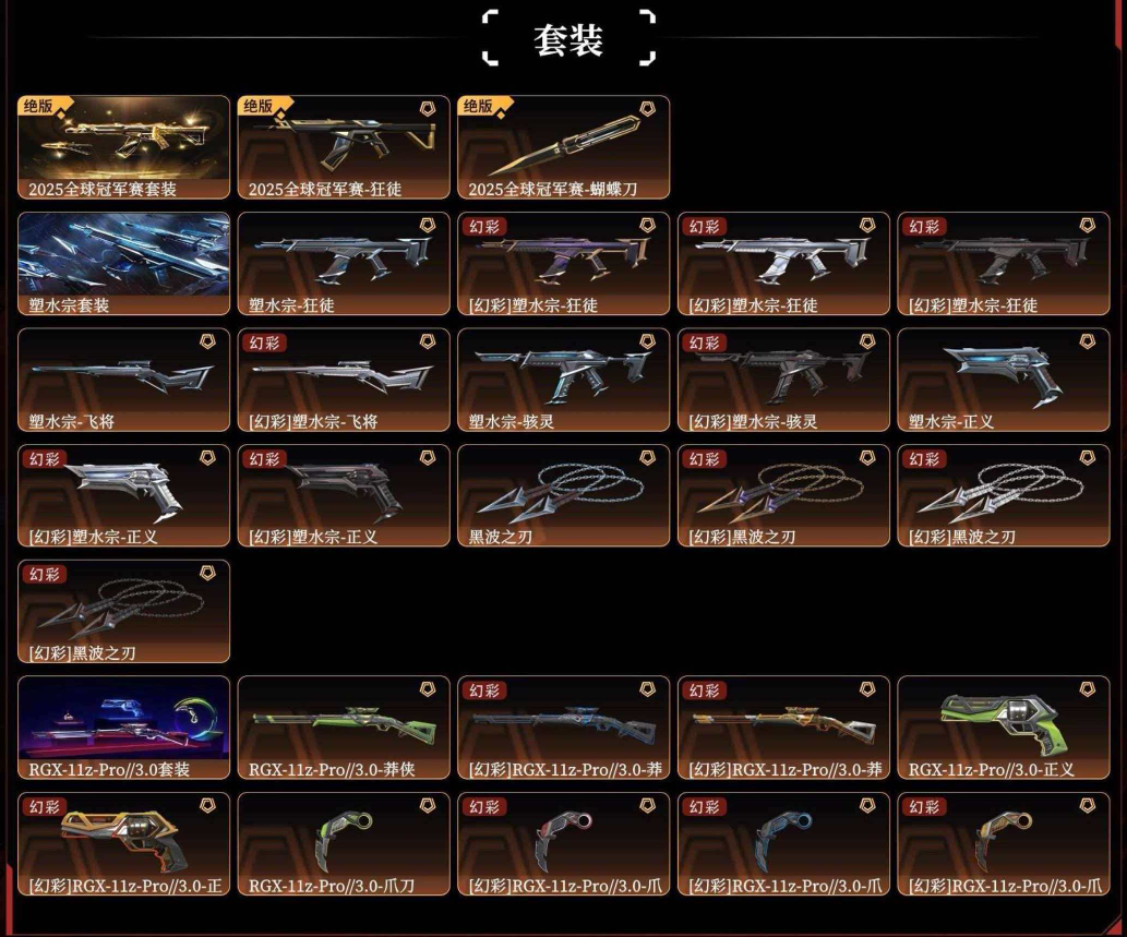 首页 > 租号大厅 > 无畏契约-wegame > wegame/wegame > ✨25冠军塑水显卡pro3.0套黑波之刃VCT✨超时空混沌盖亚紫金光荣洪荒离子神兵掠影朋克西部