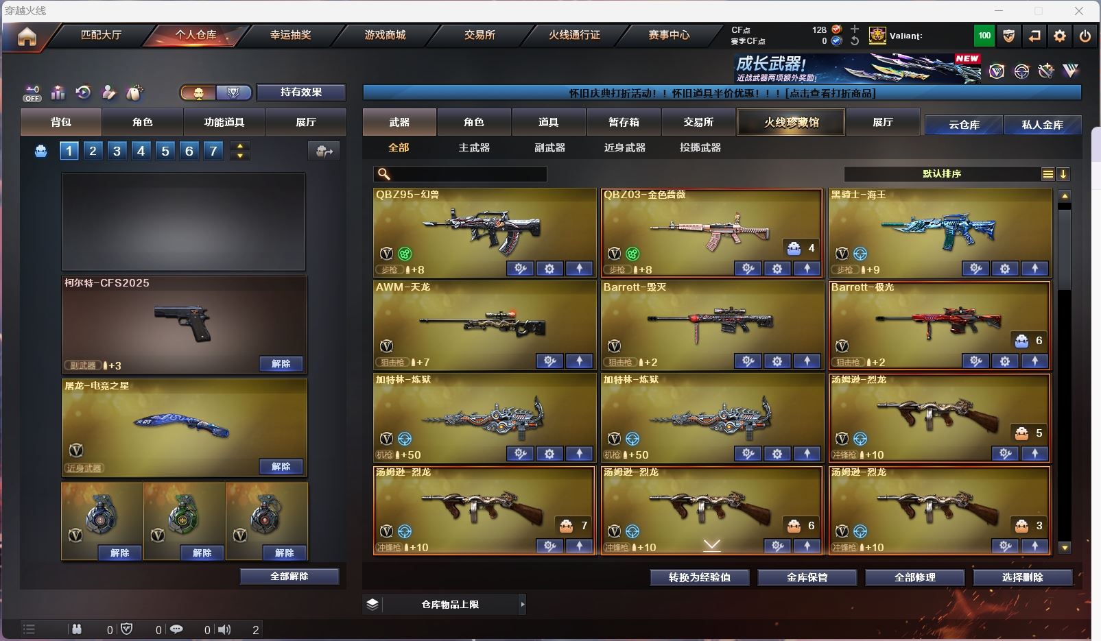 【幻兽套 雷*5】【5烈龙 炼狱*2 死亡之眼 】【qbz金色蔷薇】【火麒麟】【黑龙】【雷神】【黑骑士】【毁灭】【极光】【武器:朱雀 海王 】【9手枪:修罗*2 天神 沙鹰幻兽*5】【7刀具:屠龙 龙啸 擎天 麒麟刺 女皇利刃幻兽 】【雷套:幻兽雷*5】【四防角色:王者魅影 】;QBZ03-金色蔷薇,