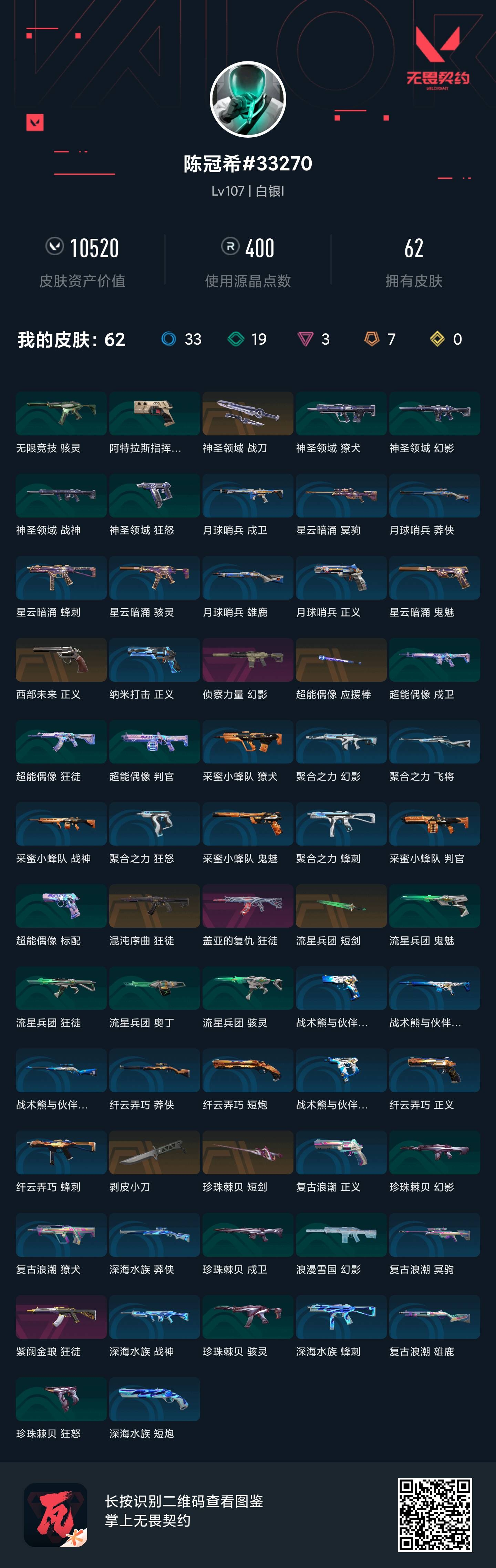 • 武器皮肤数量: 62