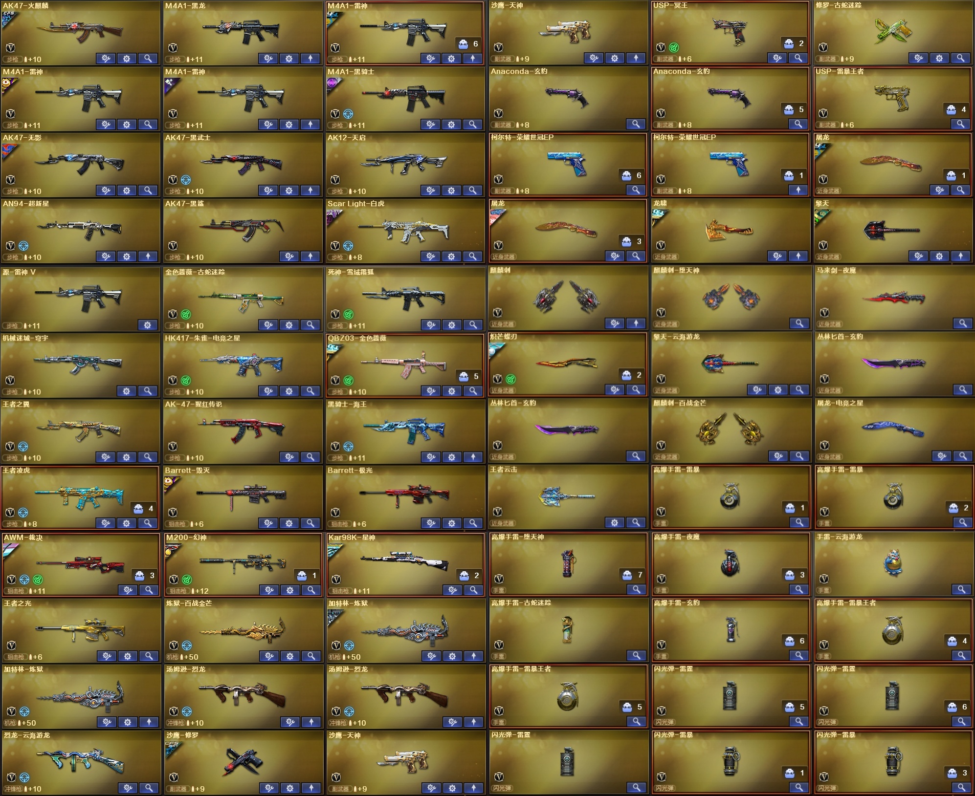 ★收藏好评! 由于异地登录保护机制,部分客户在使用客户端自动上号时会出现密码错误,注意本号密码不会错误,请多尝试5-6次!本账号已经过虚拟财产认定,请各位科技大神高抬贵手。请素质租号,文明游戏,谢谢大家配合!!;USP-雷暴王者,炽芒蝶刃,隼,电竞教官-云悠悠,QBZ03-金色蔷薇,M200-幻神,Scar Light-白虎,