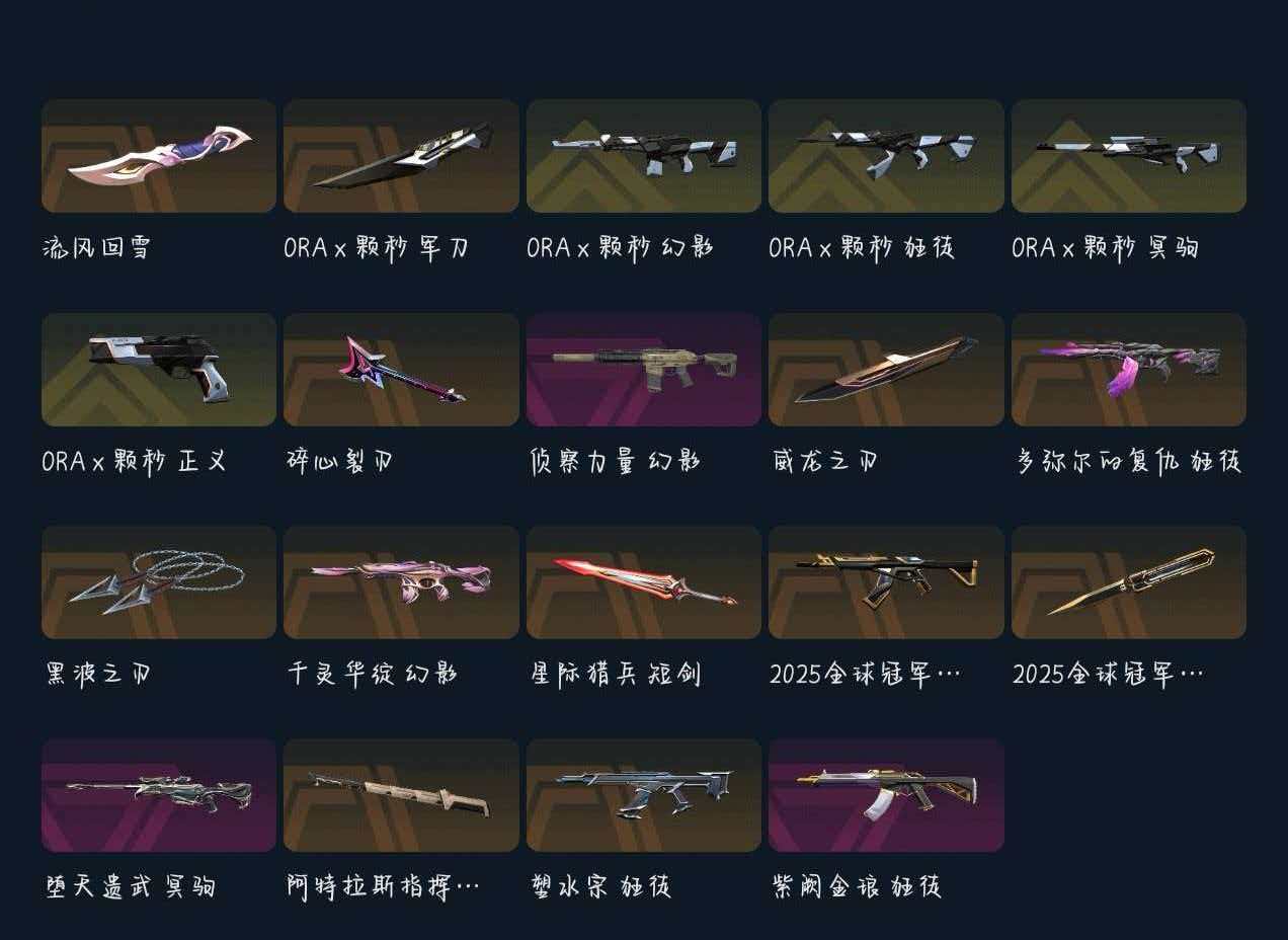 可排位+塑水宗+威龙之刃+黑波+流风回雪+颗秒套装+侦查幻影+莲花幻影+紫金狂徒+25冠军+石头AK