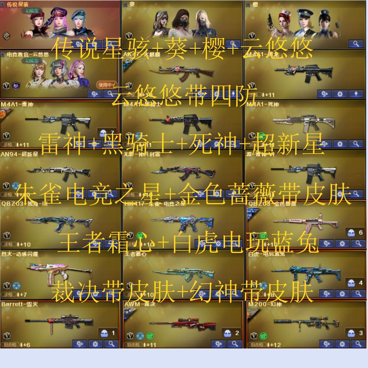 61v3王者3炫金可排/【/传说星骇/炽芒蝶刃/M200幻神+幻神黄忠/M200-竞技荣光/HK417-朱雀-电竞之星/QBZ03-金色蔷薇/死亡之眼/盘龙/炼狱/修罗/天神/2套竞技荣光雷/黄金猫猫手套白鲨/生存之眼/猫猫手套/】【传情小小语音包/死神-雪域霜狐-怀旧音效卡/黑龙音效卡/裁决音效卡/黑骑士音效卡/雷神音效卡/毁灭音效卡/炼狱-百战金芒-庆典舞曲音效卡/沙鹰-修罗-庆典舞曲音效卡/白虎-庆典舞曲音效卡/毁灭-怀旧音效卡/屠龙-电竞之星-竞星跃动音效卡/HK417-朱雀-电竞之星-竞星跃动音效卡/】【/金色蔷薇-电竞之星皮肤/裁决-羽掣皮肤/裁决-运输船皮肤/屠龙-惊鸿皮肤/黑骑士-战神马超/毁灭-虹光风暴皮肤/AK47-B-常胜将军-曹操/火麒麟-心动糖果/毁灭-直播专属/毁灭-青帝/雷神-暗月/AK47-B-常胜将军-曹操/黑龙-暗月/战神-流金岁月皮肤/雷神-化蛇皮肤/QBZ03-AG-CFPLS19冠军/毁灭耀金皮肤/AK47-老兵传说皮肤/火麒麟-CFSTAR/天龙-CFSTAR/修罗-CFSTAR/雷神-神秘按键皮肤/裁决-胜者为王皮肤/】【四防】电竞教官-云悠悠/葵/樱/零·纪元/战地猎狐/【四防】王者葵-惊若翩鸿/【四防】葵-赛博朋克/【四防】女主播/职业选手/】【/王者霜心-觉醒版/王者之灵-觉醒版/炫金武士/炫金千变/炫金修罗/HK417-朱雀-蛇隐宗/火麒麟-零·纪元/火麒麟-灵狐/雷神-枪娘蕾安娜/M82A1-水枪-不败狙神/KAC锯式机枪-黑桃战神/激光毁灭者III/双面神-竞魂/乱世-超越1/神圣爆裂者-末日III/征服者-超越2/真的是手枪/】【烟雾保护头盔/烟雾保护头盔化蛇/超级护目镜/闪光护目镜/超级对讲机/胡司令玩偶/超级背包3-7/全能枪王背包/炫彩背包/特殊收纳包/A背包套装扩展券+手雷包/全背包/永久防弹衣防弹头盔手雷包C4工具钳;炽芒蝶刃,传说星骇,电竞教官-云悠悠,RPK-盘龙,QBZ03-金色蔷薇,M200-幻神,
