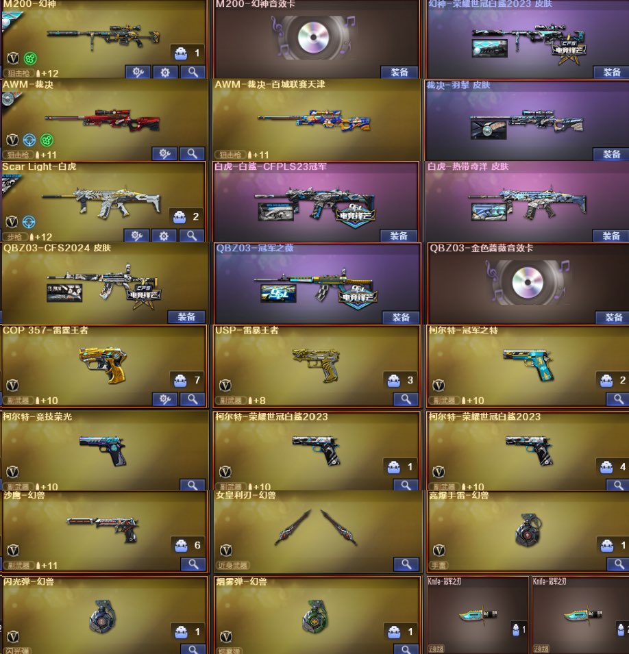 【允许排位】幻神白鲨音效卡✨白虎白鲨热带海洋✨冠军之薇cfs24✨7把好用副武✨幻兽雷1套