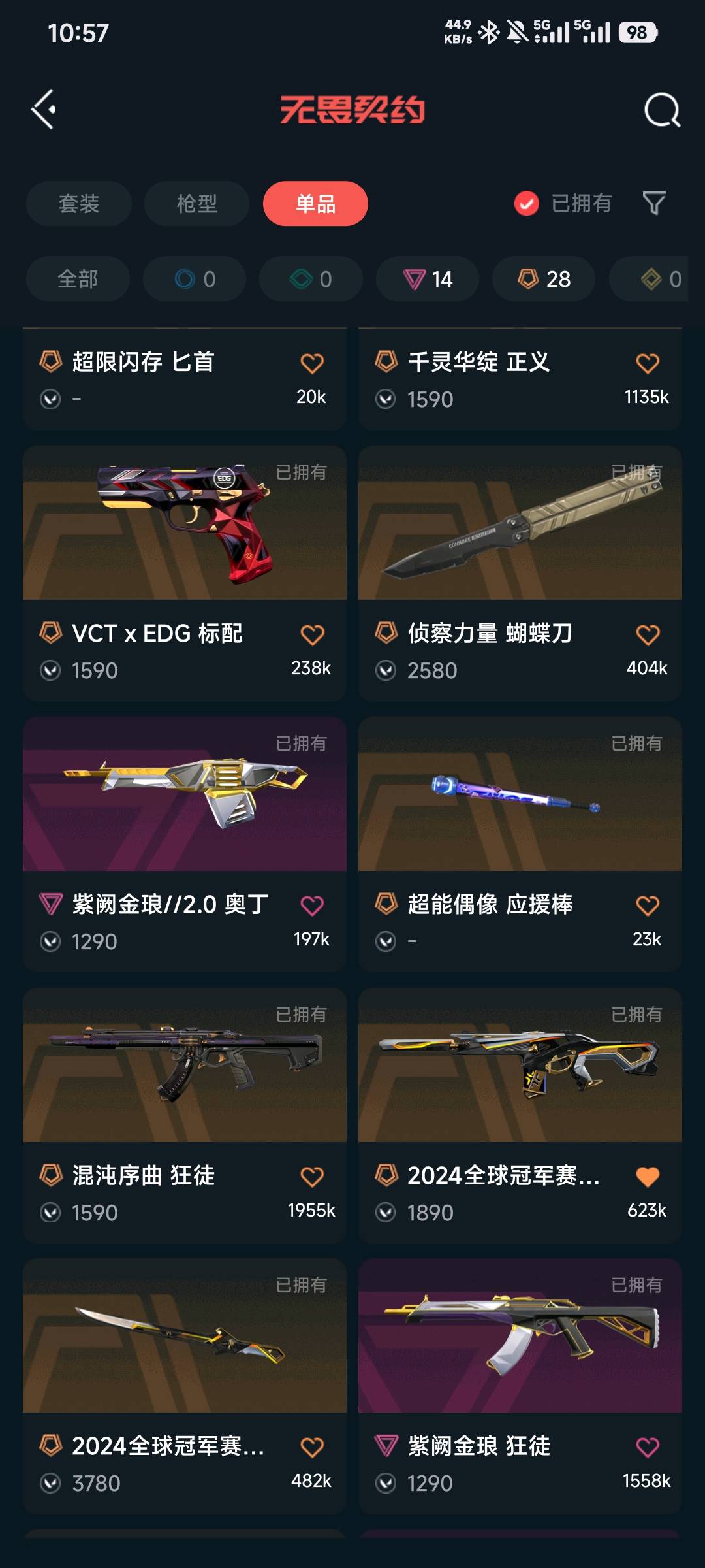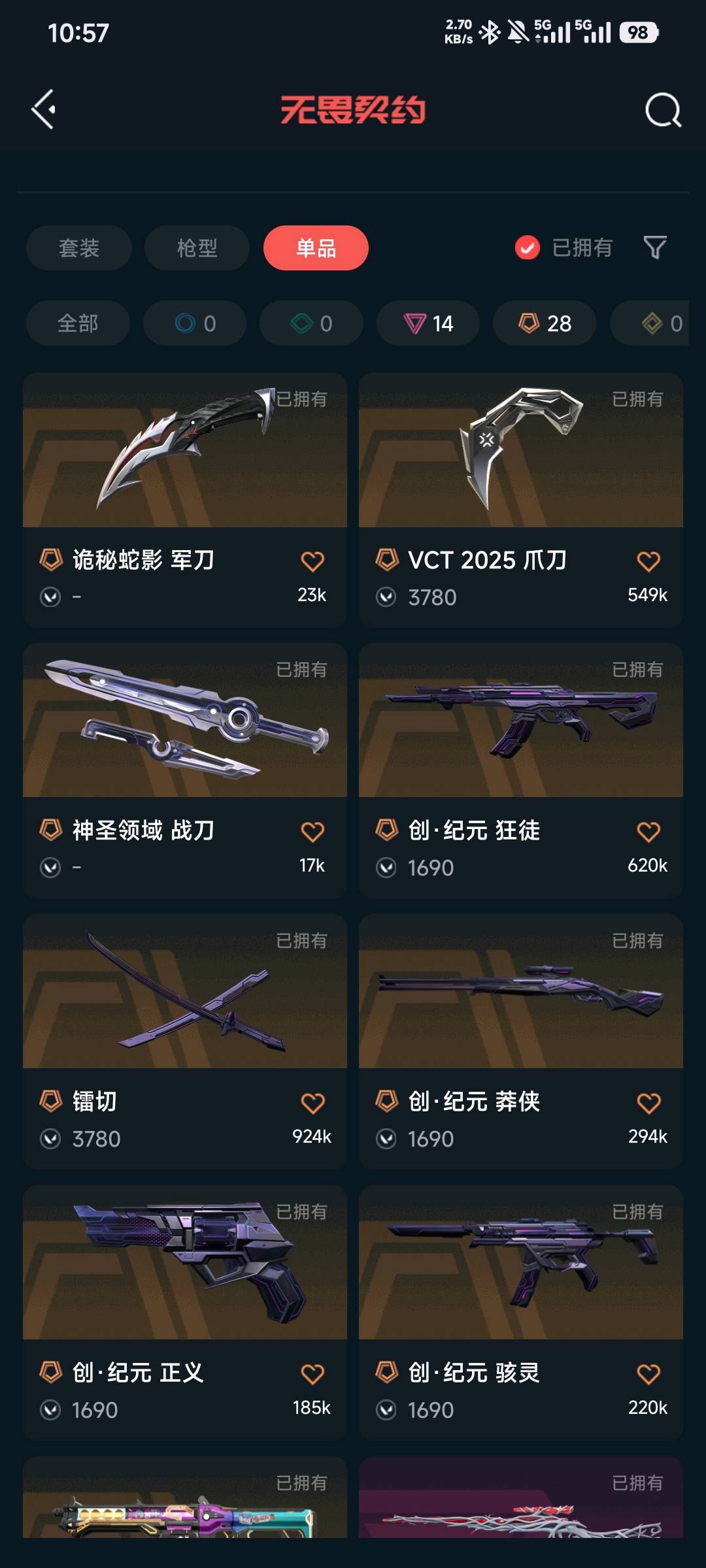 首页 > 租号大厅 > 无畏契约-wegame > wegame/wegame > ✨蝴蝶刀VCT爪刀✨24冠军般若创纪元掠影回火奇点套❤混沌盖亚紫金狂徒莲花正义天界鬼魅❤堕天光明狙