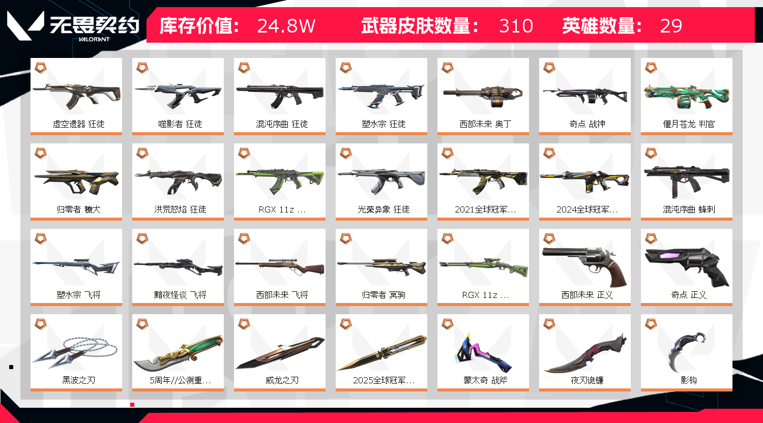 郑重声明: !!!!!因无畏契约检测严格,为防止后台插件导致封号,请务必重启电脑!!!!本人商户多年,所属账号已在派出所备案,若出现 账号封禁/毁号等情况,会马上与平台联系,平台会报警处理!请租客文明游戏,不要开挂或挂机! 1.登陆界面稍等2分钟会上去(自动登录)老板不要着急,一次不行多来几次wegame界面要耐心等2分钟 2.密令会自动输入如果一次不成功多来几次 3..进入wegame后到弹短信验证处,关闭掉,重新下载无畏契约这个游戏即可成功上号,记住。这个方法百分百上号成功!就是进入wegame重新下载无畏契约游戏 !!!百分百成功!! 4.请及时续租不要挂机,到时不下线,但是下一个会挤号导致挂机,所以请及时续租,导致禁赛的一律拉黑 5.祝老板玩的愉快,喜欢可以收藏关注 ! 开挂必追究,不拿到赔偿不罢休! 如果上号正在游戏中,是上个租客到时不下线导致的,不是号主在玩,请帮忙打完这局, 谢谢了,为了防止顶号,请您及时续租获得更好的游戏体验❤️;西部未来 奥丁,奇点 战神,黑波之刃,5周年//公测重制版 苍龙之刃,威龙之刃,偃月苍龙 判官,归零者 獠犬,