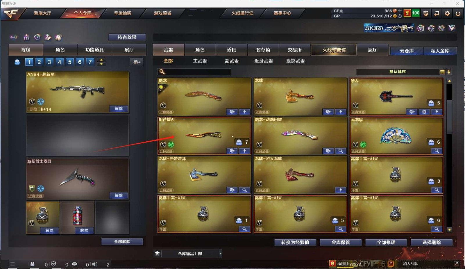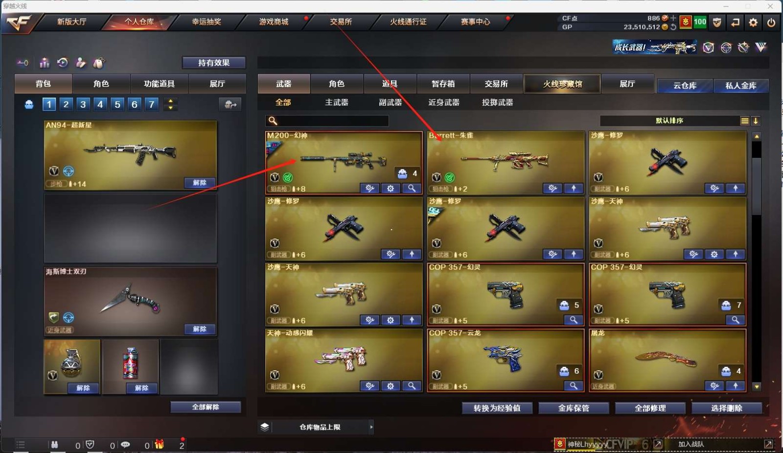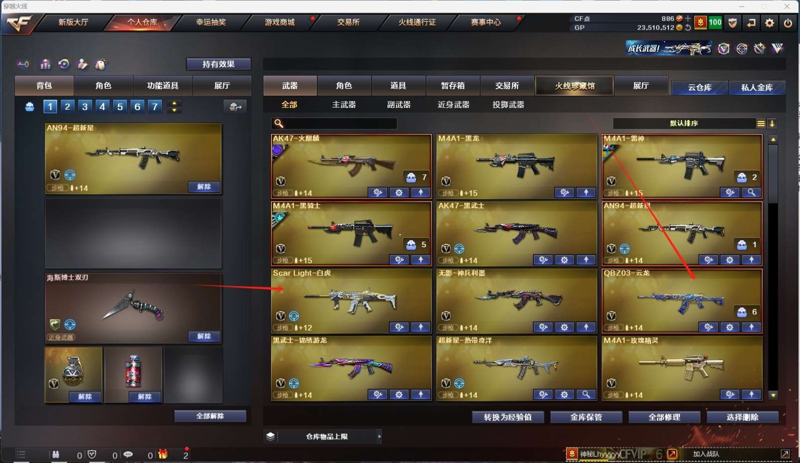 【幻神三皮!!!】 【m200幻神+荣耀白鲨皮肤+电流骇客皮肤+动感闪耀皮肤+炽芒蝶刃+cop幻灵+传说影煞】 【白虎】 【qbz03云龙套】 【qbz03金色蔷薇】 【白虎霓虹机甲皮肤】 【火麒麟+巅峰荣耀皮肤】 【黑骑士+黑骑士音效卡】 【黑龙+黑龙音效卡】 【雷神+雷神音效卡+荣耀之魄皮肤+宠儿皮肤】 【毁灭+毁灭音效卡+冠军之怒】 【王者之心 王者之影 王者之势】 【黑武士 超新星 神兵利器 锦绣游龙 热带奇洋 玫瑰精灵 动感闪耀 战士 战神 海王 身先士卒 常胜将军 极光 barrett朱雀】——【热门武器/小人呛】【15周年嘉年华 cop旗袍 炫金雷神】——【沙鹰修罗 沙鹰天神 cop幻灵 天神动感闪耀 cop云龙】——【屠龙*5 龙啸 擎天 炽芒蝶刃 屠龙动感闪耀 云龙扇 龙啸热带奇洋 龙啸烈火龙威】——【幻灵投掷武器套装*5】——【角色】【4防(传说影煞 王者魅影 )】【月兔特工】;炽芒蝶刃,传说影煞,QBZ03-金色蔷薇,M200-幻神,Scar Light-白虎,