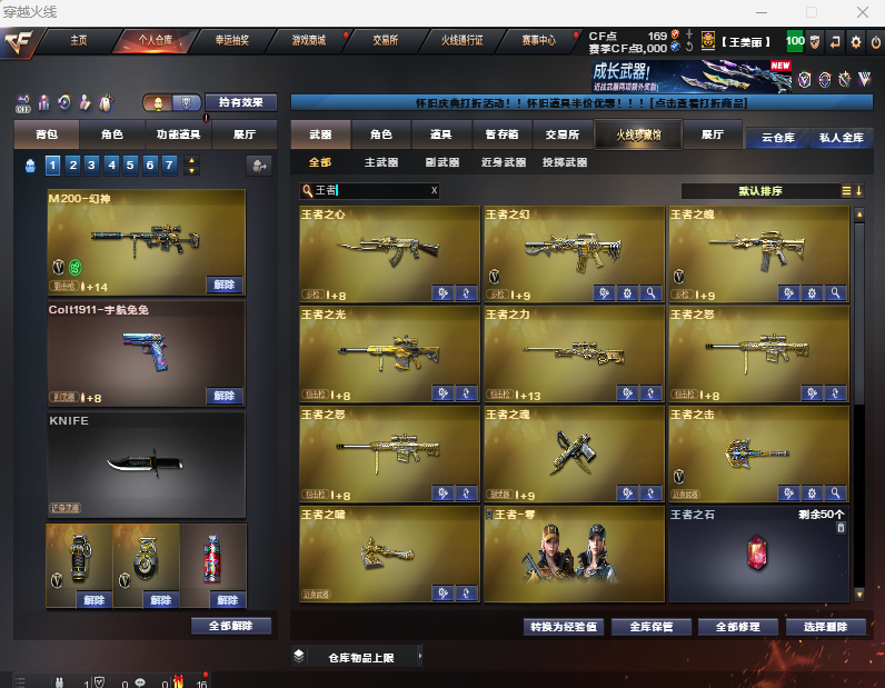 防弹衣,防弹头盔,护目镜,烟雾头,生化角色,钩子;USP-雷暴,RPK-盘龙,QBZ03-金色蔷薇,M200-幻神,Kar98K-星神,