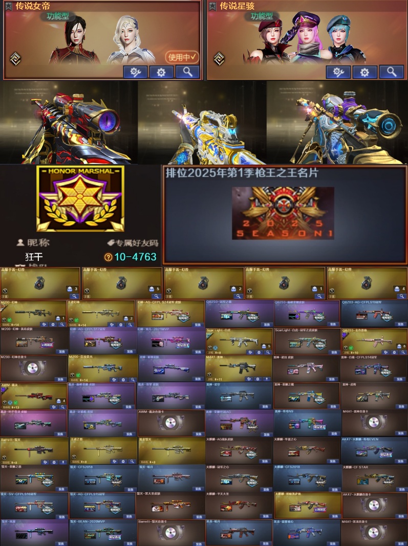 首页 > 租号大厅 > 穿越火线 > 电信区/浙江二区 > 东部极品爆破|ID:狂干|星骇女帝幻兽×5|幻神三件套|裁决三件套|顶配副手|枪王之王名片