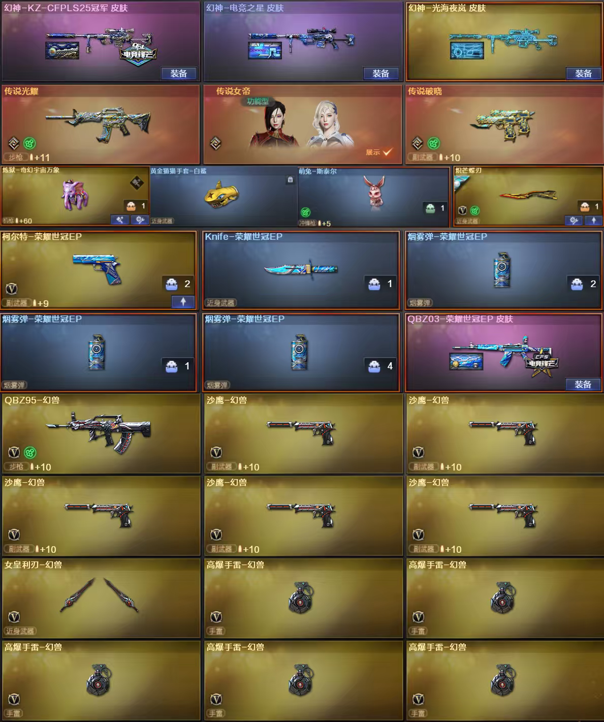 传说女帝破晓光耀全新KZ幻神光海夜岚电竞之星幻神8皮6盘带泡泡象6烈带蝴蝶萌兔;USP-雷暴,荣耀世冠-柯尔特,炽芒蝶刃,沙漠玫瑰,传说女帝,电竞教官-云悠悠,王者沙漠玫瑰,