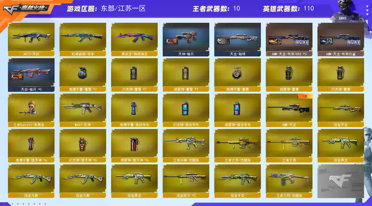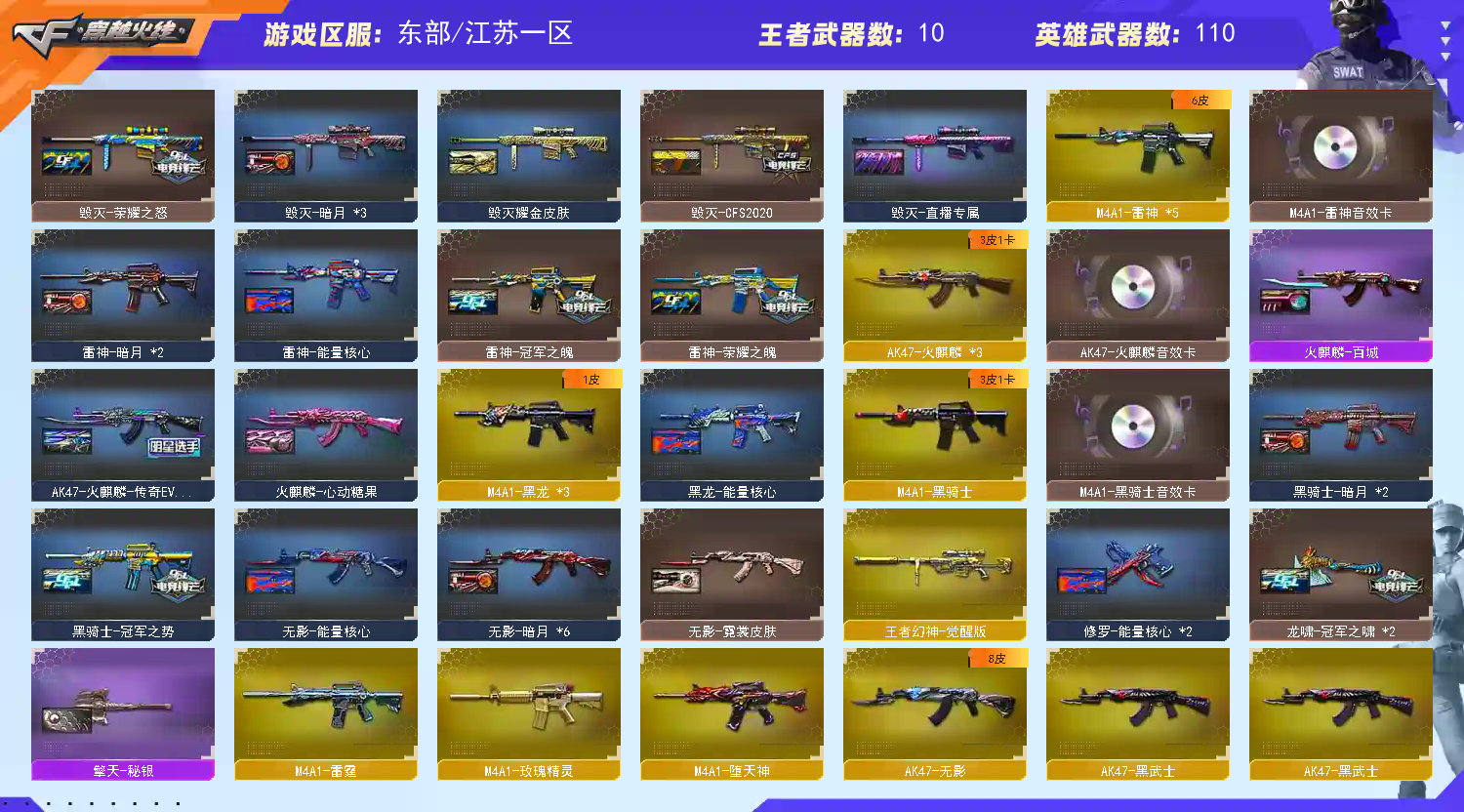 【亮点解析 白虎三件套 生化高配 】【王者幻神 】【6炼狱 5盘龙 烈龙*2 炼狱小刚 死亡之眼 】【scar白虎+卡+暗星】【qbz金色蔷薇】【火麒麟+卡+even】【黑龙】【雷神+卡+冠军之魄+荣耀之魄】【黑骑士+卡+冠军之势】【毁灭+卡+荣耀之怒+ag15冠军】【极光】【裁决+巅峰荣耀 】【雷霆套 堕天神套】【武器:雷霆 堕天神 王者冰魄 王者之烈 】【9手枪:修罗*4 天神 雷霆 堕天神 竞技荣光 荣耀世冠柯尔特 】【12刀具:屠龙*2 龙啸 擎天 麒麟刺 尼泊尔雷霆 斩神刀雷暴 堕天神 王者之锋 王者之击 】【13雷套:雷霆雷*7 堕天神雷*6】【音效卡:白虎音效卡 雷神音效卡 毁灭音效卡 黑骑士音效卡 火麒麟音效卡 】【四防角色:王者葵貂蝉 王者魅影 女主播】;荣耀世冠-柯尔特,RPK-盘龙,QBZ03-金色蔷薇,Scar Light-白虎,