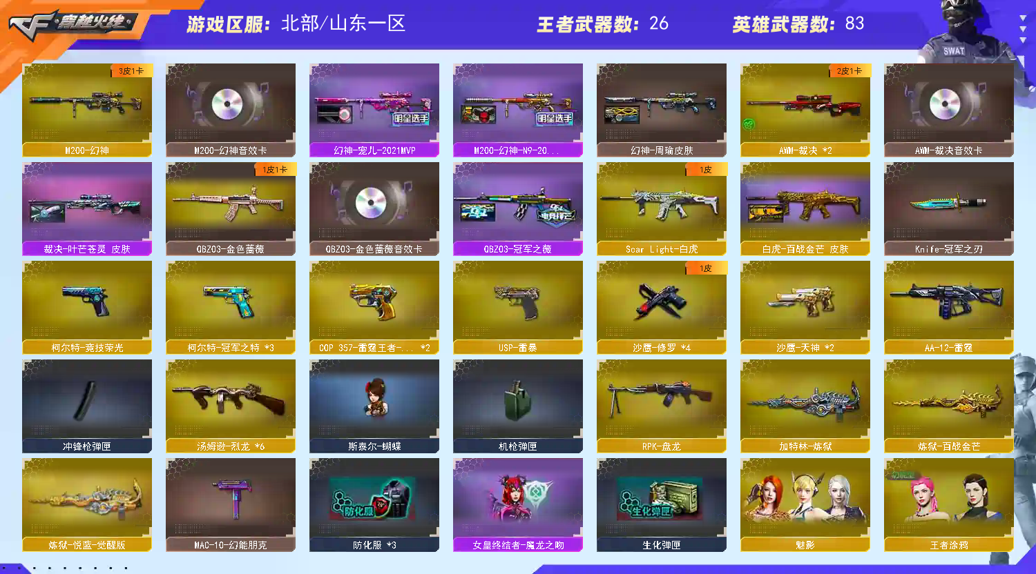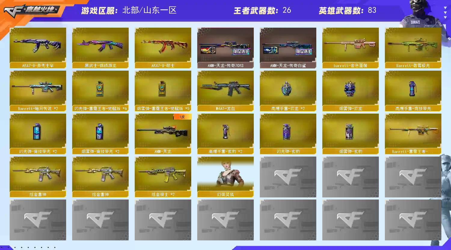首页 > 租号大厅 > 穿越火线 > 网通区/山东一区 > ⚡精品爆破生化号 ⚡幻神三件套宠儿皮肤⚡裁决三件套⚡qbz三件套⚡白虎⚡百战金芒⚡七把质量手枪⚡