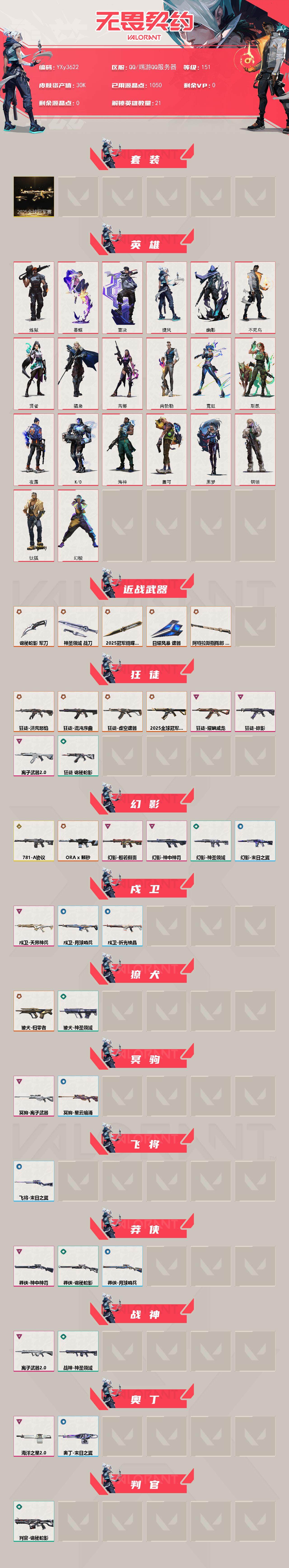 冻结三分钟内解除,短信通知重新上即可!喜欢收藏不迷路、游戏异常进小黑屋、时间不够请提前续租或者不要开局 【套装】:2025全球冠军赛套装 【英雄】:幻棱,炼狱,暮蝶,钛狐,壹决,捷风,幽影,不死鸟,贤者,猎枭,芮娜,尚勃勒,霓虹,斯凯,夜露,K/O,海神,盖可,黑梦,钢锁 【近战武器】:近战武器-2025全球冠军赛 蝴蝶刀,近战武器-诡秘蛇影 军刀,近战武器-神圣领域 战刀,近战武器-日耀风暴 遗器,近战武器-阿特拉斯指挥部 甩棍 【狂徒】:狂徒-2025全球冠军赛,狂徒-洪荒怒焰,狂徒-混沌序曲,狂徒-虚空遗器,狂徒-掠影,狂徒-耀鳞威龙,狂徒-离子武器//2.0,狂徒-诡秘蛇影 【幻影】:幻影-781-A协议,幻影-ORA x 颗秒,幻影-般若假面,幻影-神中神罚,幻影-神圣领域,幻影-末日之翼 【戍卫】:戍卫-天界神兵,戍卫-月球哨兵,戍卫-折光棱晶 【獠犬】:獠犬-归零者,獠犬-神圣领域 【冥驹】:冥驹-离子武器,冥驹-星云暗涌 【飞将】:飞将-末日之翼 【莽侠】:莽侠-神中神罚,莽侠-诡秘蛇影,莽侠-月球哨兵 【战神】:战神-离子武器//2.0,战神-神圣领域 【奥丁】:奥丁-海洋之星//2.0,奥丁-末日之翼 【判官】:判官-诡秘蛇影 【雄鹿】:雄鹿-月球哨兵 【骇灵】:骇灵-塑水宗,骇灵-星云暗涌 【蜂刺】:蜂刺-星云暗涌,蜂刺-折光棱晶 【标配】:标配-折光棱晶 【正义】:正义-月球哨兵 【鬼魅】:鬼魅-诡秘蛇影,鬼魅-星云暗涌 【狂怒】:狂怒-神圣领域 【短炮】:短炮-末日之翼 【卡面】:南瓜盛典 卡面,唱片的故事 卡面,正义的化身 卡面,失而复得 卡面,时间到 卡面,最高舞台 卡面,梦幻奶茶 卡面,哨卫者之领域 卡面,暂别喧嚣 卡面,无畏契约GO!一卷:芮娜 卡面,无畏契约GO!一卷:零 卡面,《双城之战》金克丝 卡面,别冒尖 卡面,代号红色 卡面,新兵报到 卡面,V契约 卡面,无畏契约 卡面,#拯救宽体奇乐 卡面 【喷漆】:控场勿近 喷漆,超级粉丝 喷漆,捷风差距 喷漆,头号粉丝 喷漆,买装还是存钱 喷漆,红鳞 喷漆,暴走萝莉 喷漆,胜利属于无畏契约 喷漆,GLHF 喷漆,无畏契约 喷漆 【挂饰】:第九季//第三幕 纪念币 挂饰,无畏契约GO!一卷 零 挂饰,第九季//第二幕 纪念币 挂饰,袖珍捷风 挂饰,Z世代特饮 挂饰,第九季//一幕 纪念币 挂饰,天外飞客 挂饰,《双城之战》魄罗 挂饰,无畏契约 纪念币 挂饰;归零者 獠犬,虚空遗器 狂徒,洪荒怒焰 狂徒,掠影 狂徒,天界神兵 戍卫,混沌序曲 狂徒,离子武器//2.0 狂徒,