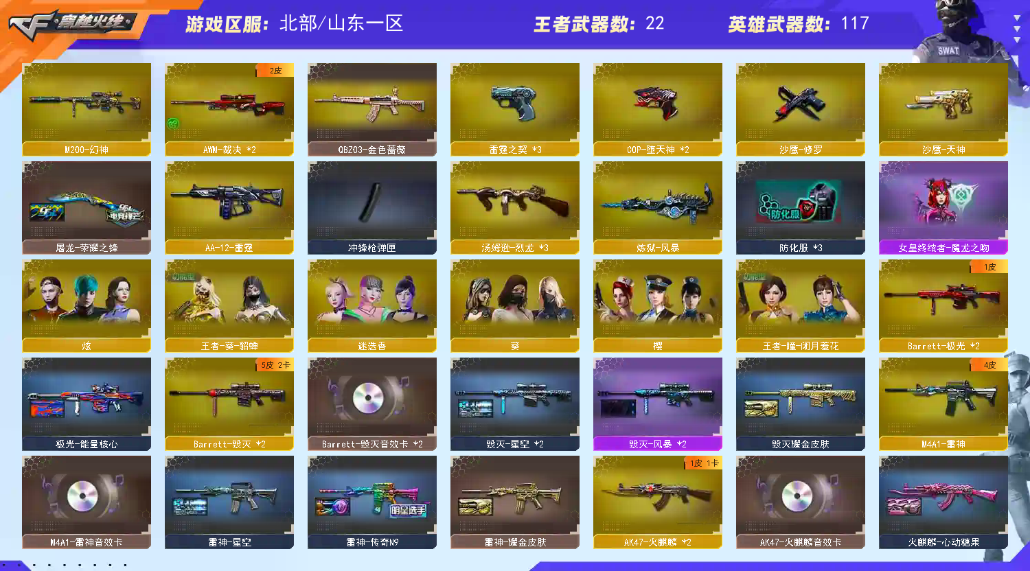 此账号和平台属于合作关系,已经备案。如果账号封号或者什么的,商户将会协助平台然后报警。 收藏好评!由于异地登录保护机制,部分客户在使用客户端自动上号时会出现密码错误,注意本号密码不会错误,请多尝试5-6次!本账号已经过虚拟财产-认1证。请素质租号,文明游戏,谢谢大家配合!!!;QBZ03-金色蔷薇,M200-幻神,