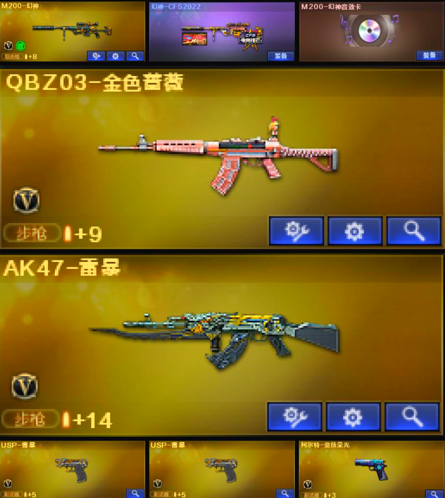 【北.部】极品♥幻神三件套♥qbz♥双usp雷暴♥柯尔特竞技荣光♥雷神带皮♥王者之翼♥主流武器全;USP-雷暴,QBZ03-金色蔷薇,M200-幻神,