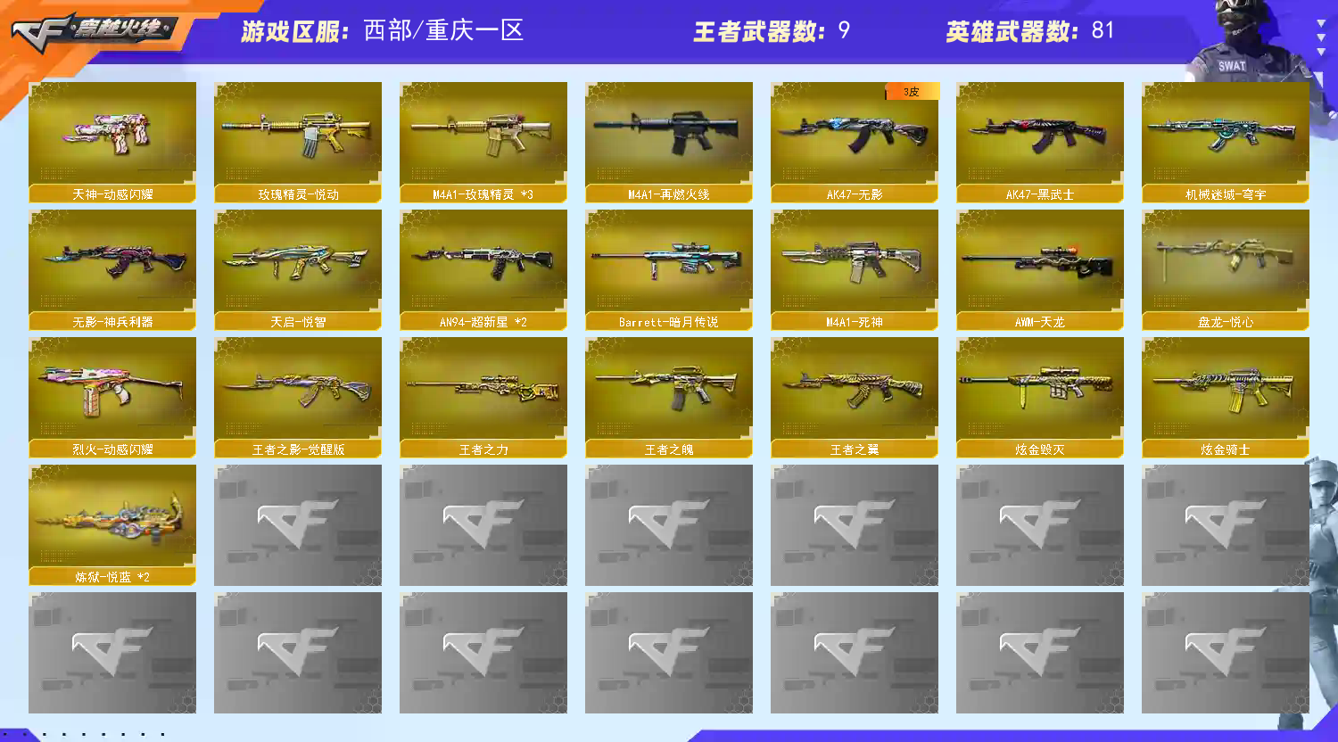 • 游戏区服:穿越火线 / 电信区 / 重庆一区